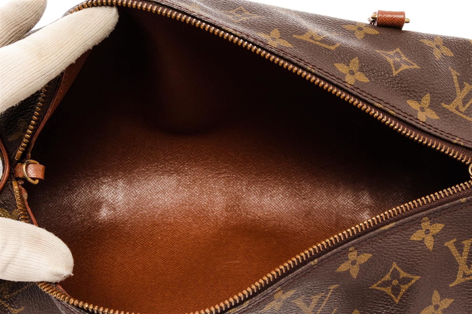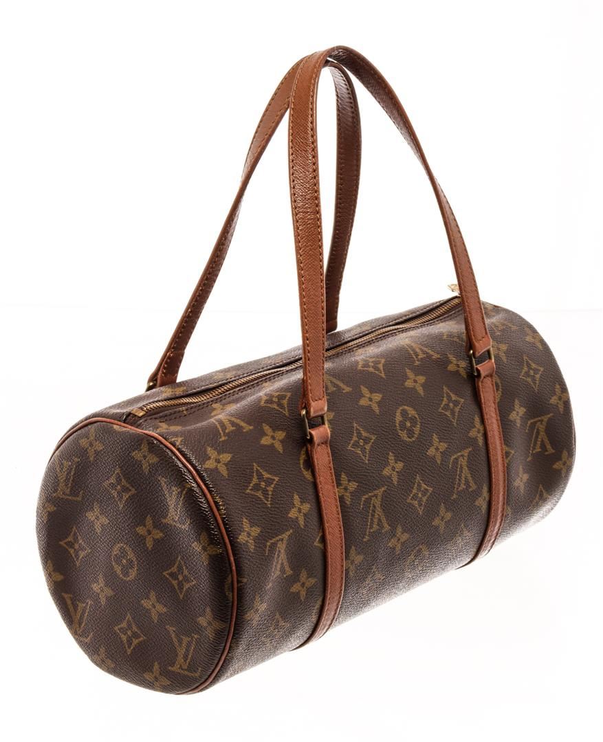Louis Vuitton Brown Monogram Papillion 30 Shoulder Bag. All available information is listed in the description and shown in the photos. Louis Vuitton Brown Monogram Papillion 30 Shoulder Bag with brown, printed, brass hardware, dual shoulder straps, leather trim embellishment, leather lining, zip closure at top Height: 8.5" Width: 11.25" Depth: 5.25" Shoulder Strap Drop: 6.75" / Height: 21.59" Width: 28.57" Depth: 13.33" Shoulder Strap Drop: 17.14"