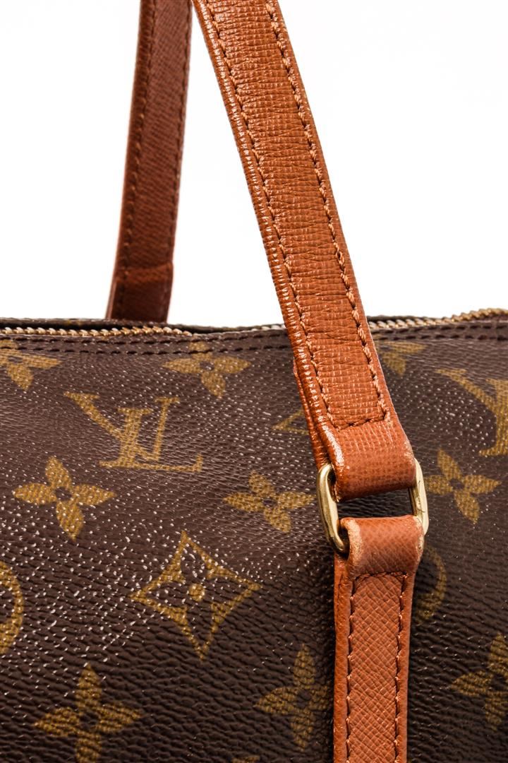 Louis Vuitton Brown Monogram Papillion 30 Shoulder Bag. All available information is listed in the description and shown in the photos. Louis Vuitton Brown Monogram Papillion 30 Shoulder Bag with brown, printed, brass hardware, dual shoulder straps, leather trim embellishment, leather lining, zip closure at top Height: 8.5" Width: 11.25" Depth: 5.25" Shoulder Strap Drop: 6.75" / Height: 21.59" Width: 28.57" Depth: 13.33" Shoulder Strap Drop: 17.14"
