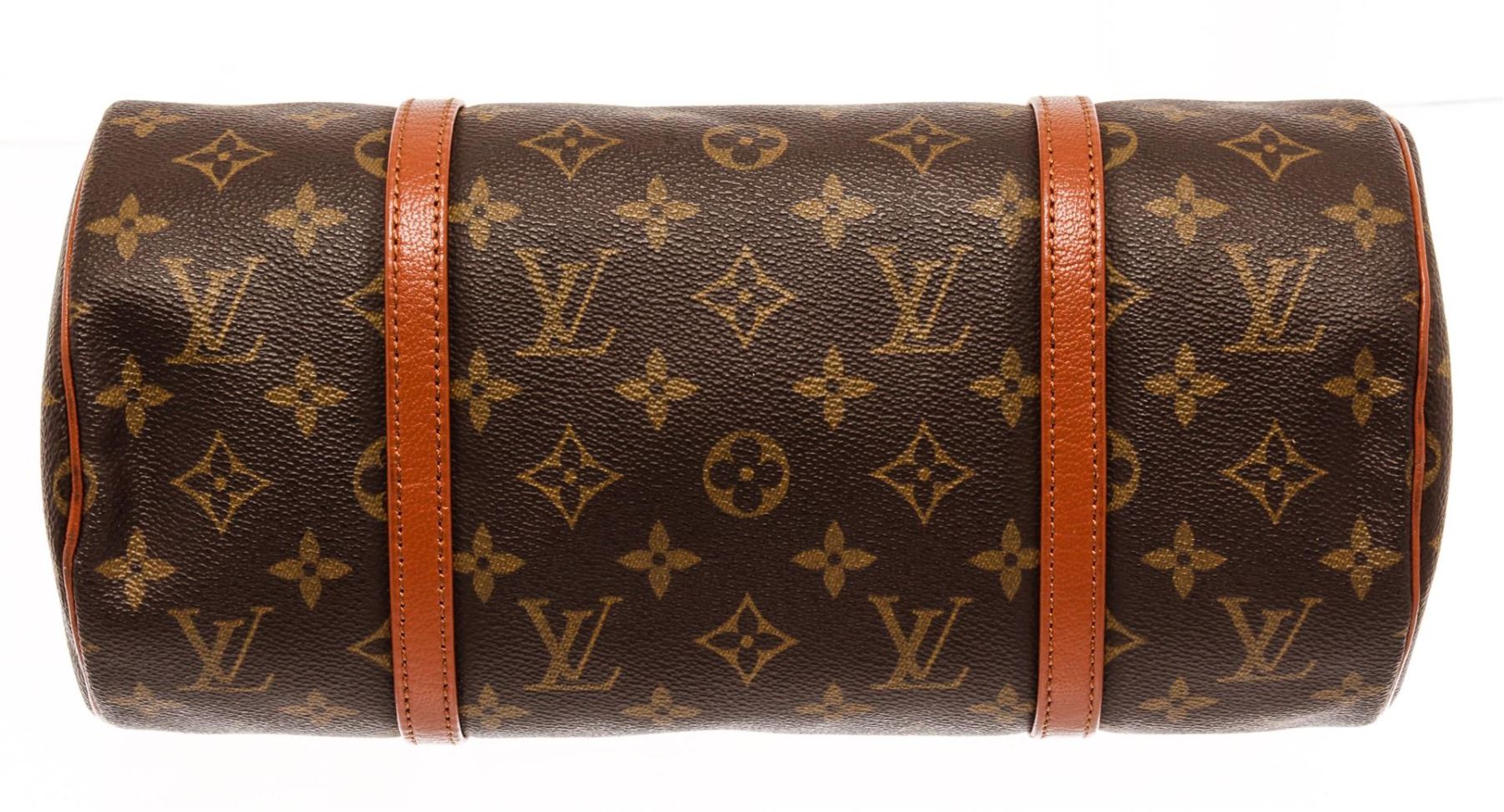 Louis Vuitton Brown Monogram Papillon 30 Shoulder Bag. All available information is listed in the description and shown in the photos. Louis Vuitton Brown Monogram Papillon 30 Shoulder Bag with brown, printed, brass hardware, dual shoulder straps, leather trim embellishment, leather lining, zip closure at top Height: 8.5" Width: 11.25" Depth: 5.25" Shoulder Strap Drop: 6.75" / Height: 21.59" Width: 28.57" Depth: 13.33" Shoulder Strap Drop: 17.14"