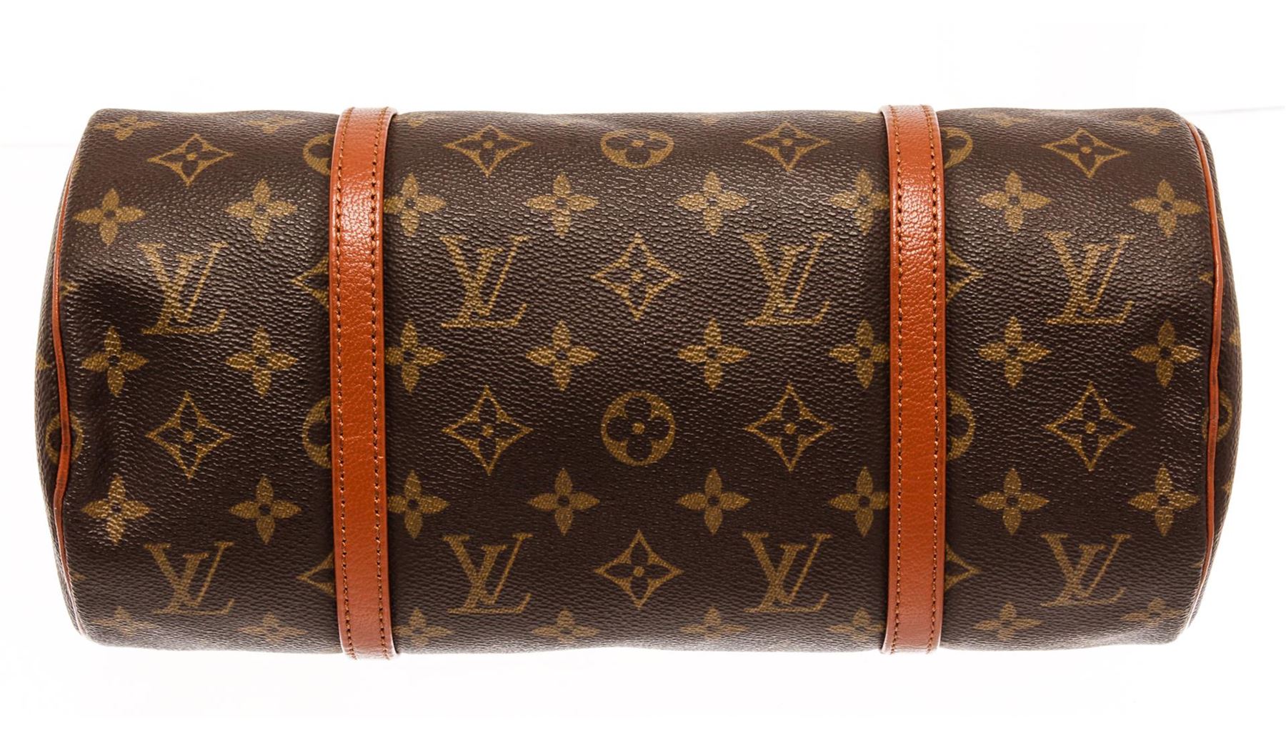 Louis Vuitton Brown Monogram Papillon 30 Shoulder Bag. All available information is listed in the description and shown in the photos. Louis Vuitton Brown Monogram Papillon 30 Shoulder Bag with brown, printed, brass hardware, dual shoulder straps, leather trim embellishment, leather lining, zip closure at top Height: 8.5" Width: 11.25" Depth: 5.25" Shoulder Strap Drop: 6.75" / Height: 21.59" Width: 28.57" Depth: 13.33" Shoulder Strap Drop: 17.14"