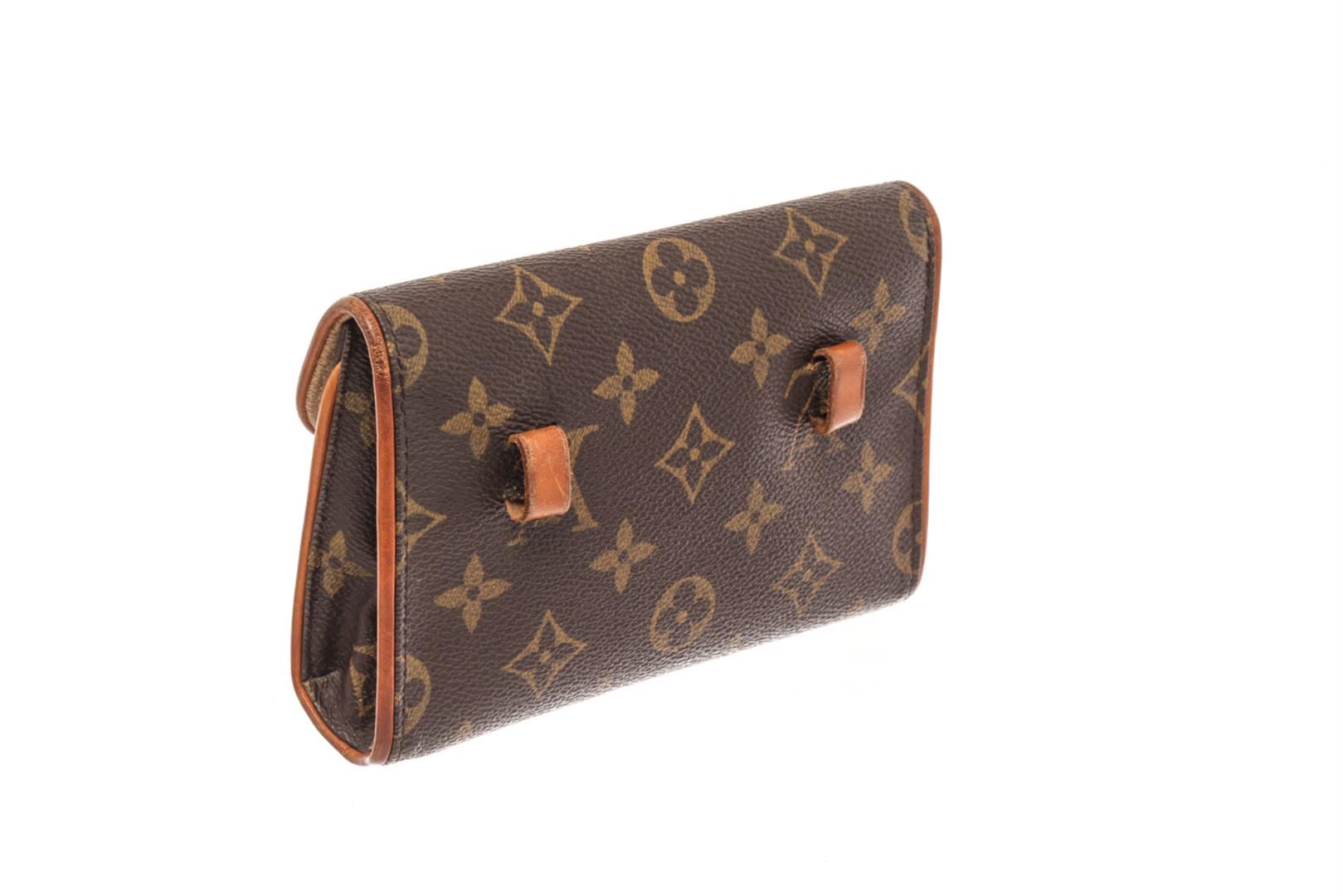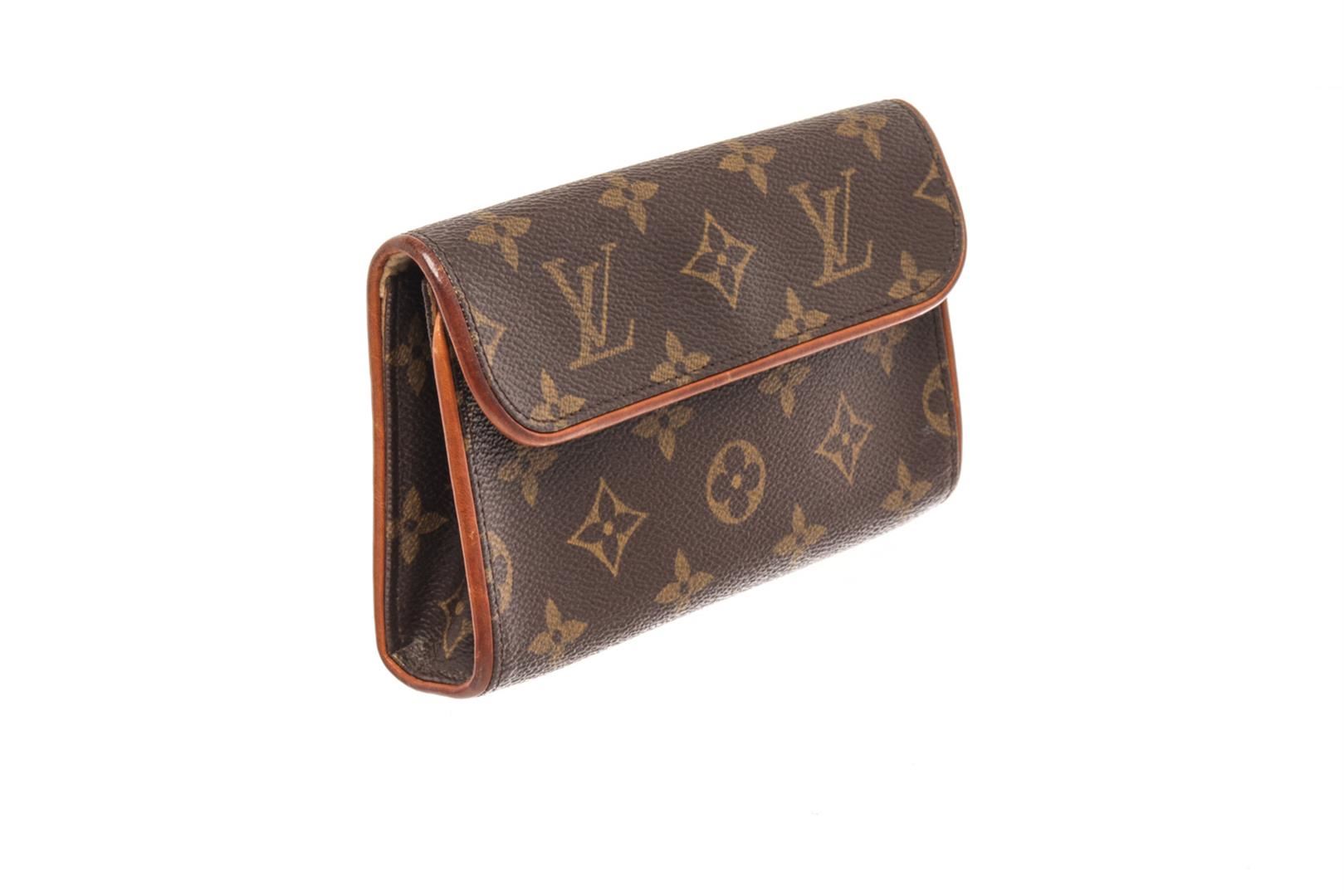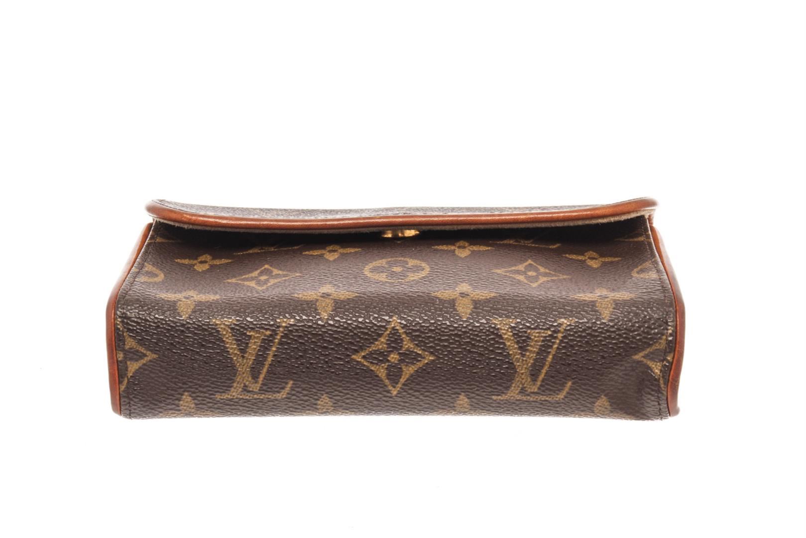 Louis Vuitton Brown Monogram Pochette Florentine Belt Bag. All available information is listed in the description and shown in the photos. louis vuitton brown monogram pochette florentine belt bag with monogram pattern, brass hardware, adjustable waist strap, suede lining, flap closure at front. Height: 3.75" Width: 6.25" Depth: 1.25", Strap Length: 35.25" / 9.52 x 15.87 x 3.17 Cm