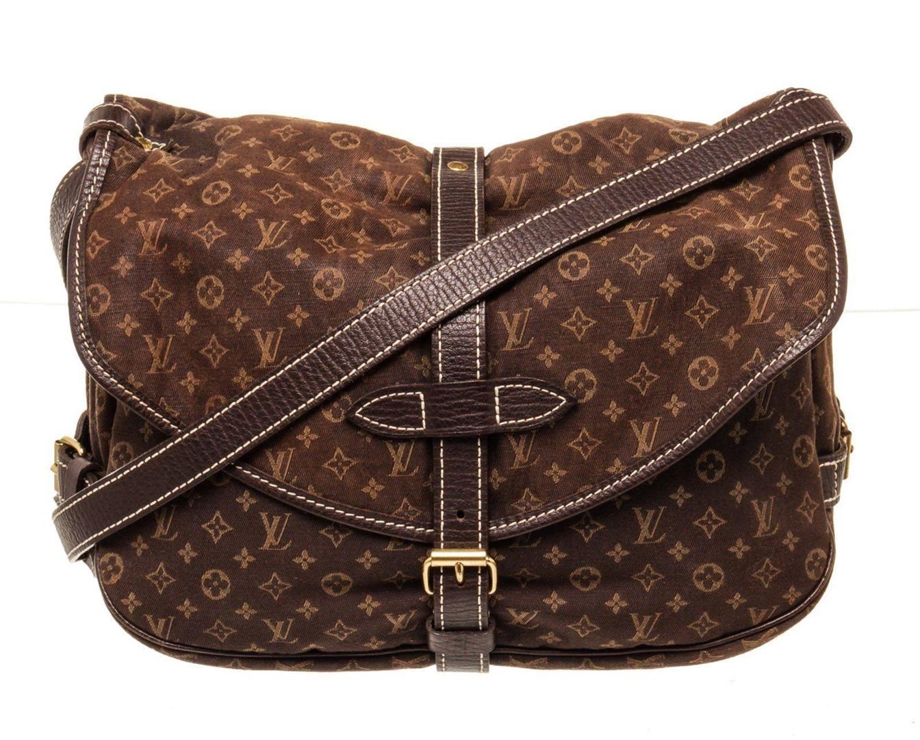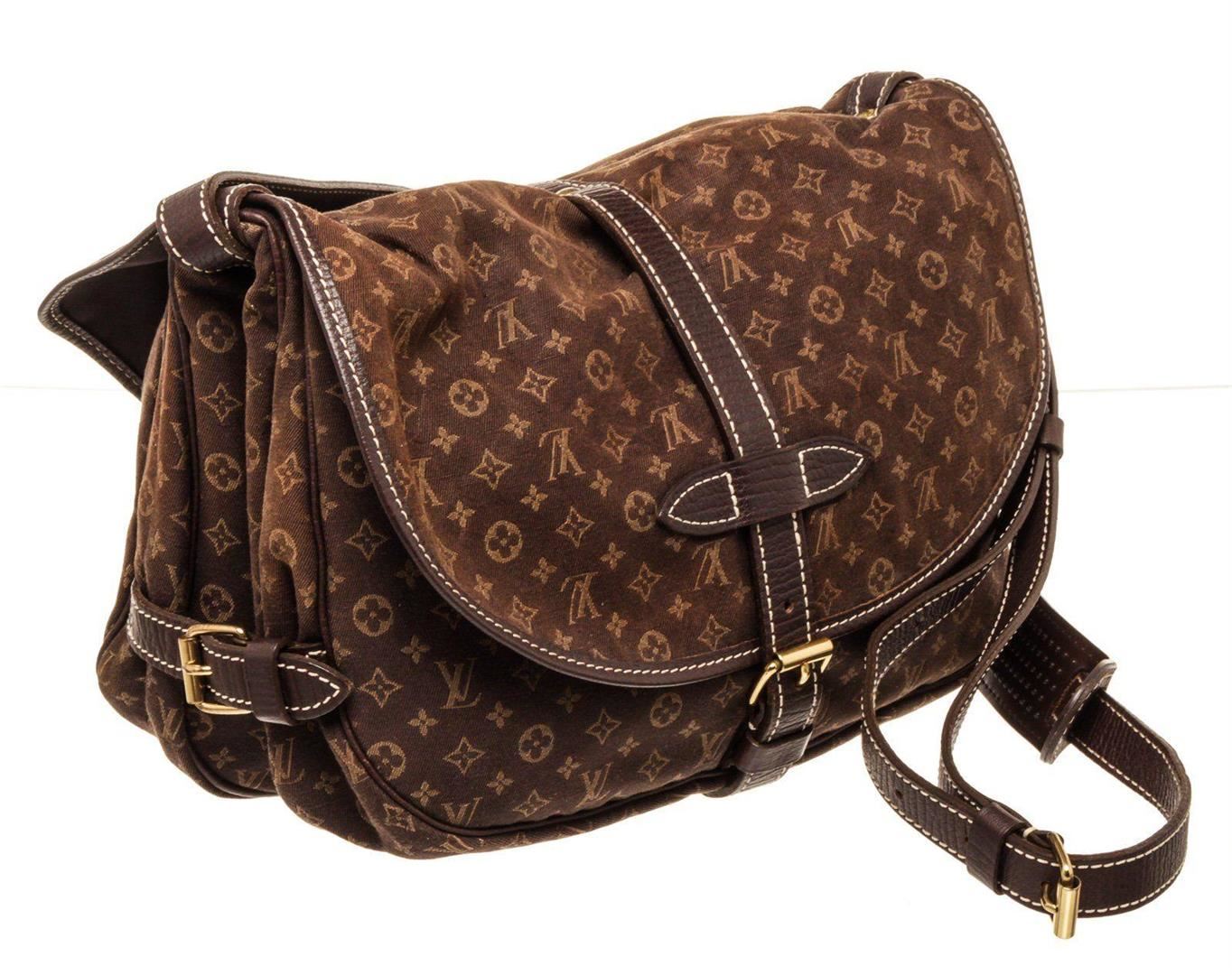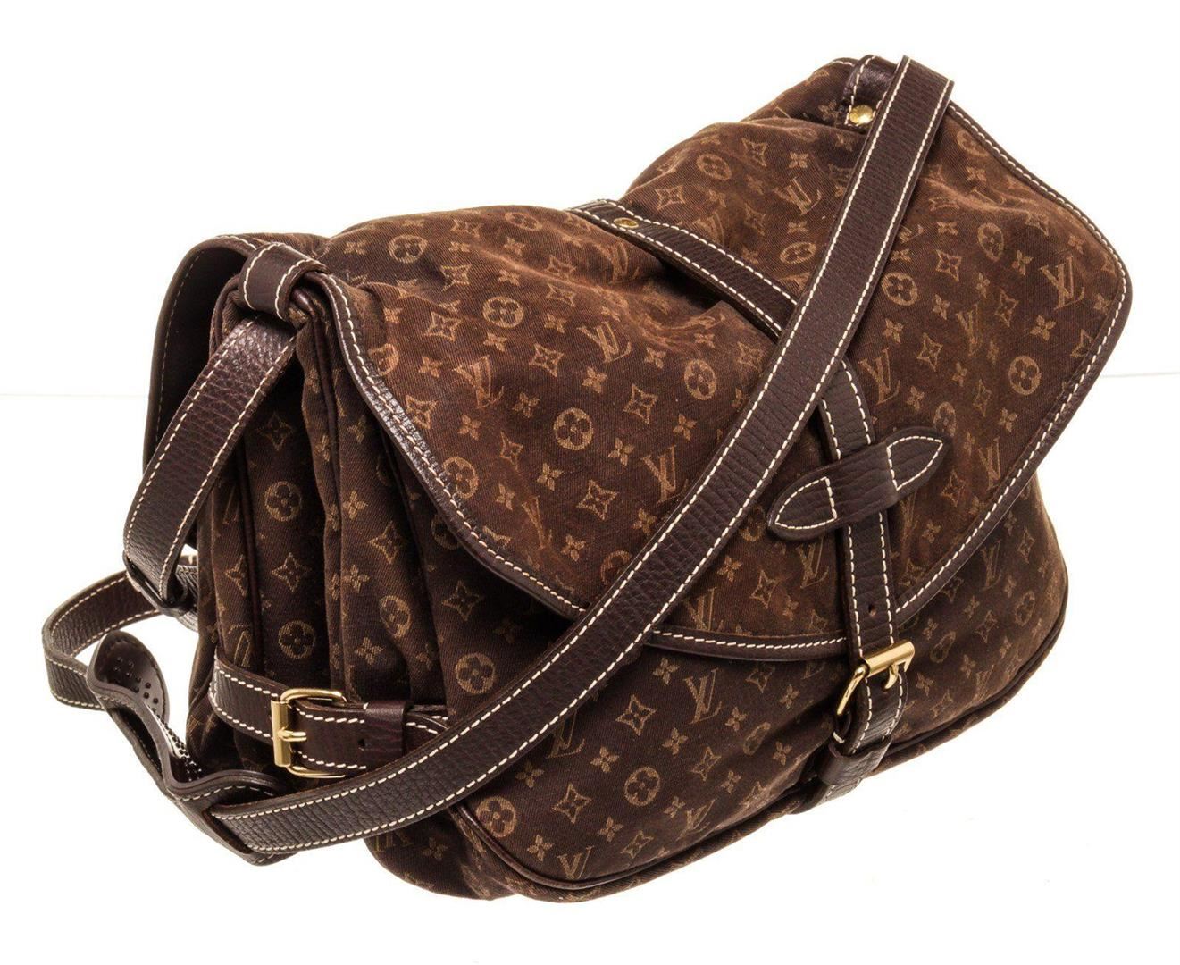 Louis Vuitton Brown Monogram Saumur 30cm Crossbody Bags with material monogram canvas, gold-tone hardware, interior slip pocket, shoulder strap and turn-lock closure.