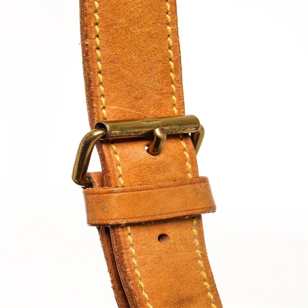 One Louis Vuitton Brown Monogram Saumur 35 Shoulder Bag. Item is sold AS-IS. All available information is listed in the description and shown in the photo. Louis Vuitton brown monogram Saumur 35 shoulder bag features a monogram canvas exterior, brown fabric lining, a contrasting vachetta leather strap, front flaps with belt buckle closures, dual interior compartments, and interior slip pockets. Vachetta is stained and cracking, Height: 10.6" Width: 9.4" Depth: 8.7", Handle Drop: / 26.92 x 23.87 x 22.09 Cm