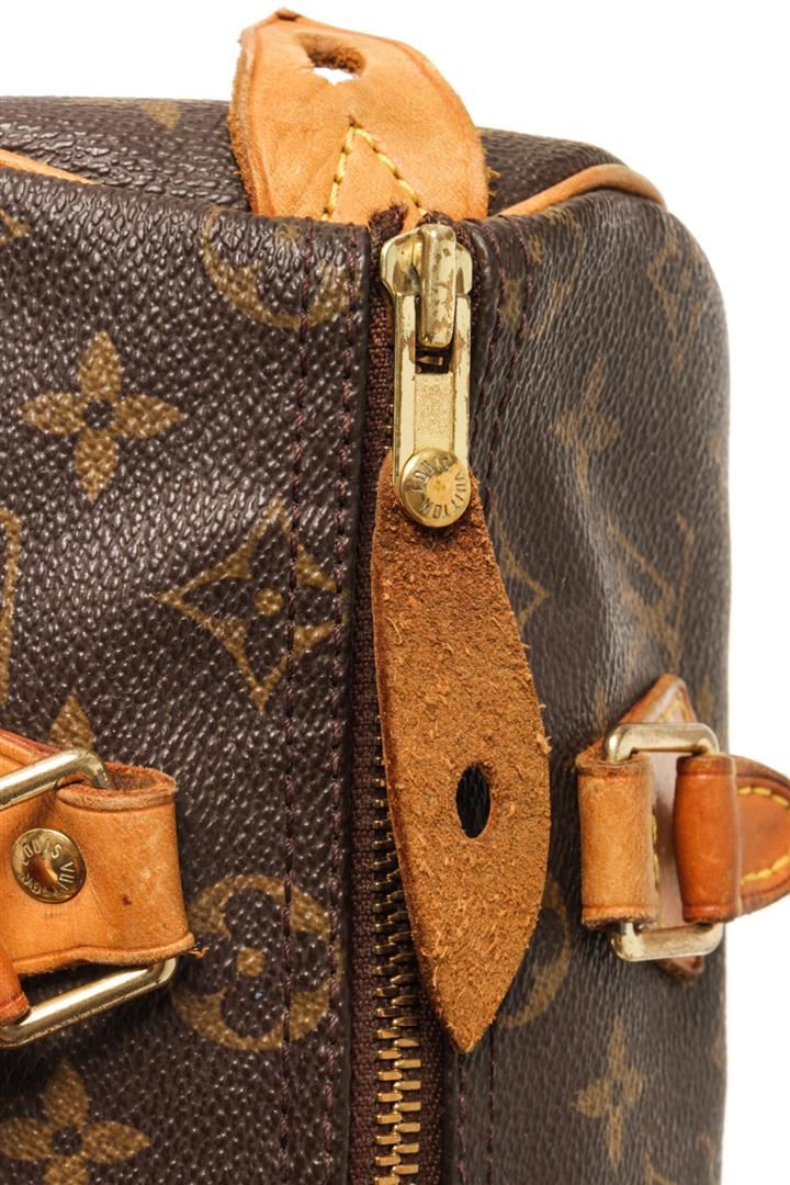 One Louis Vuitton Brown Monogram Speedy 25 Satchel Bag. Item is sold AS-IS. All available information is listed in the description and shown in the photo. Louis Vuitton Brown Monogram Speedy 25 Satchel Bag with brown louis vuitton monogram speedy 25 bag. the speedy 25 features the monogram canvas, vachetta handles and trim, a top zip closure, and an interior pocket.    7.5" L x 9.8" W x 5.9" D, 3.5" drop / 19.05 L x 24.89 W x 14.98 D CM, 8.89 CM drop