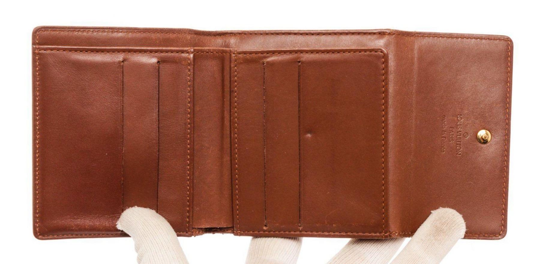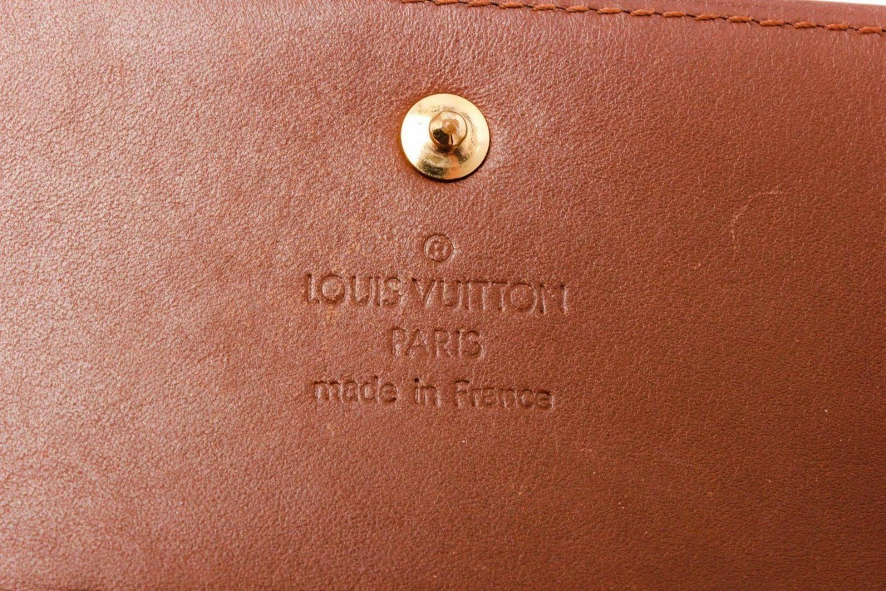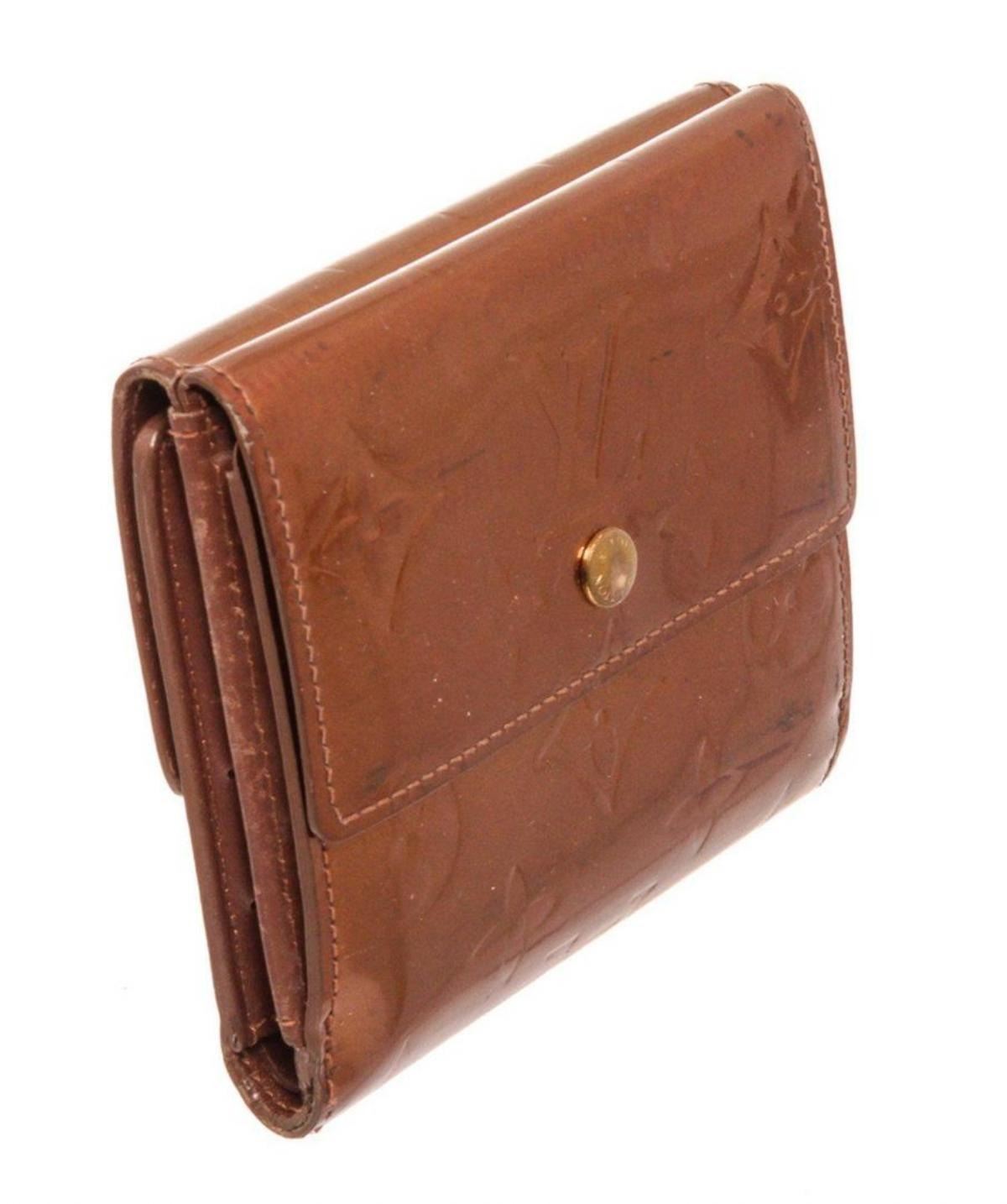 Louis Vuitton Brown Monogram Vernis Leather Elise Sarah Wallet with material monogram vernis leather, gold-tone hardware, trim tan vachetta, interior cardholder pocket and snap closure. MEASUREMENTS: Length 0.5 in / 1 cm Width 4.25 in / 11 cm Height 4 in / 10 cm Condition: Pre-Owned Good overall, please see photographs for detail.