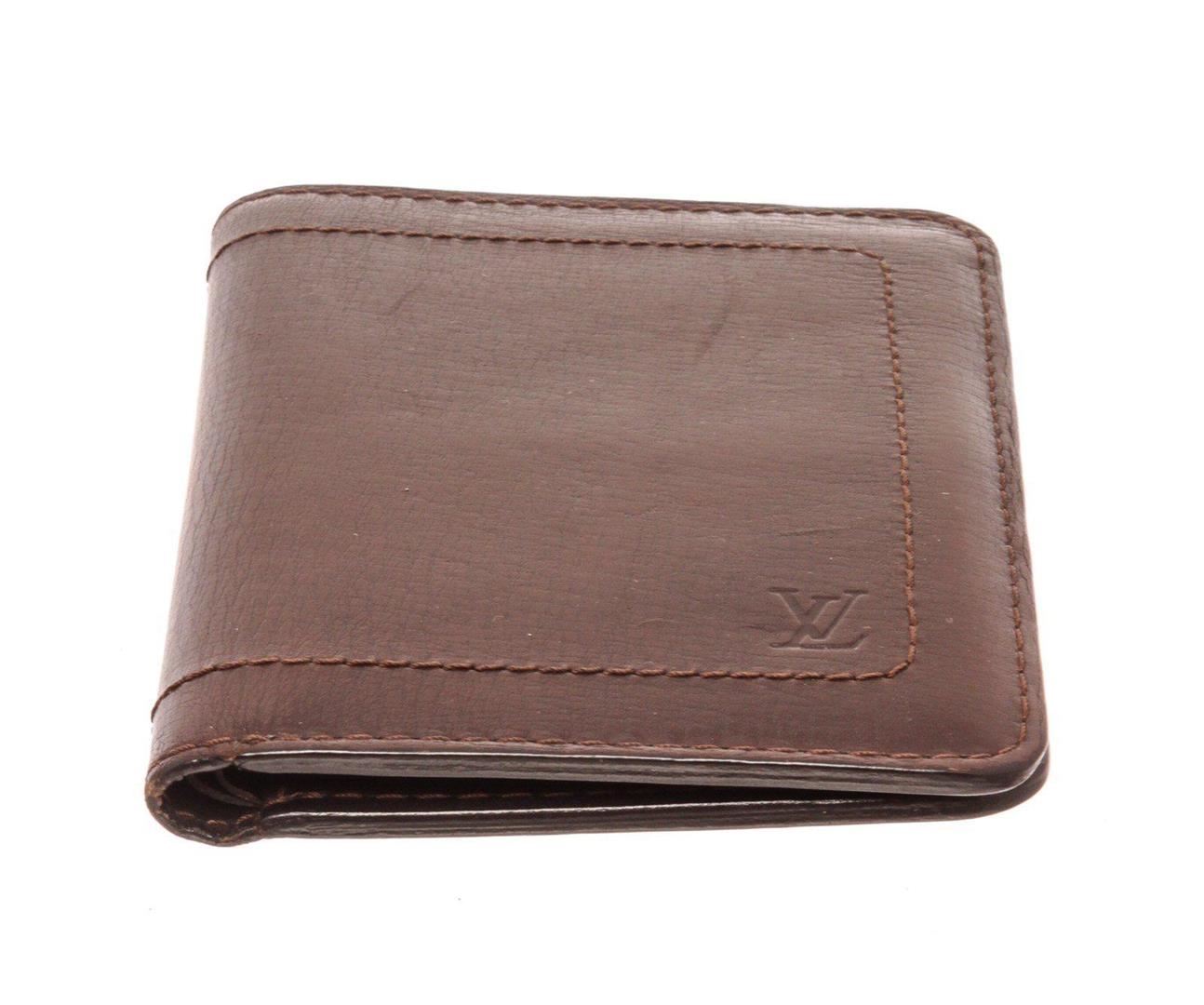 Louis Vuitton Brown Multi Card Wallet with material leather, gold-tone hardware, trim tan vachetta, interior cardholder pocket and snap closure. Measurements: Length 4.25 in / 11 cm Width 7.5 in / 19 cm Height 1 in / 3 cm Condition: Pre-Owned Good overall, please see photographs for detail.