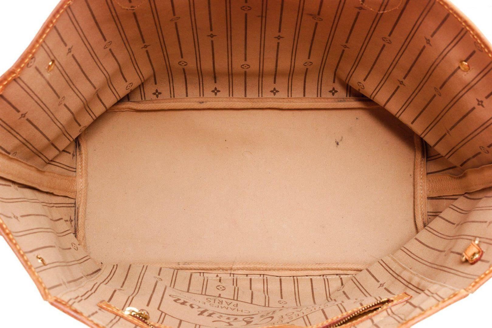 Louis Vuitton Brown Neverfull MM Tote Bag with gold-tone hardware, trim tan vachetta leather, interior zip pocket, dual top handle, shoulder straps and flap closure. Measurements: Length: 5 in / 13 cm Width: 15 in / 38 cm 8.5 in / 22 cm Condition: Pre-Owned Good overall, please see photographs for detail.