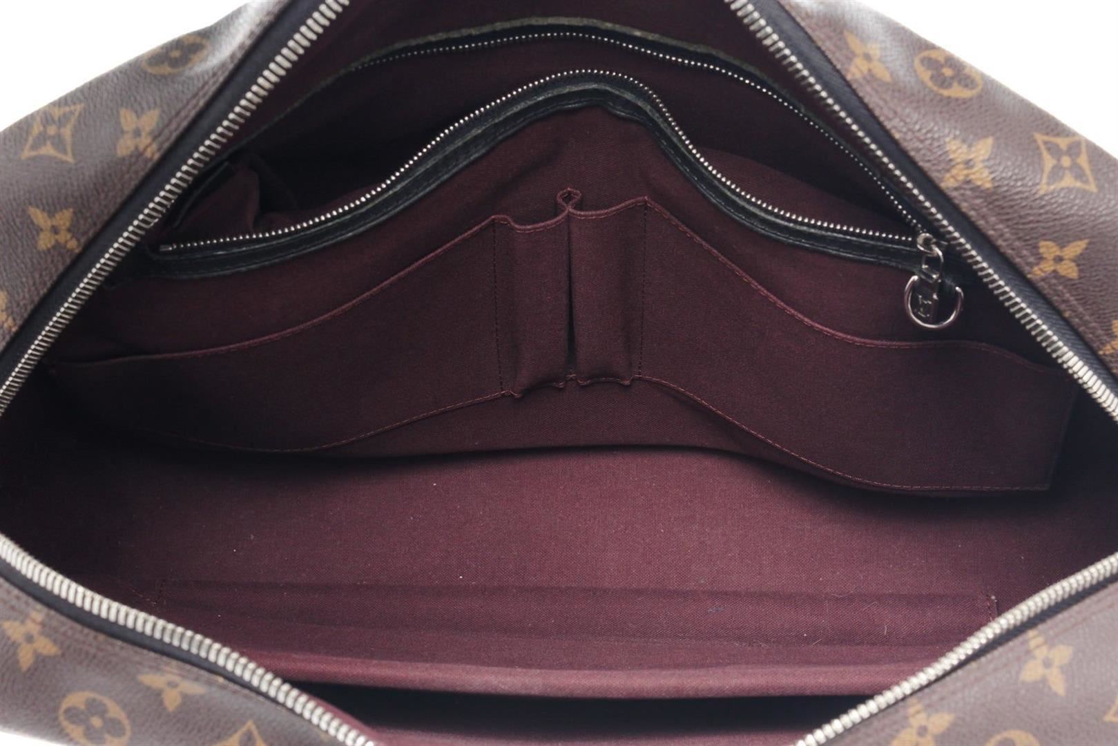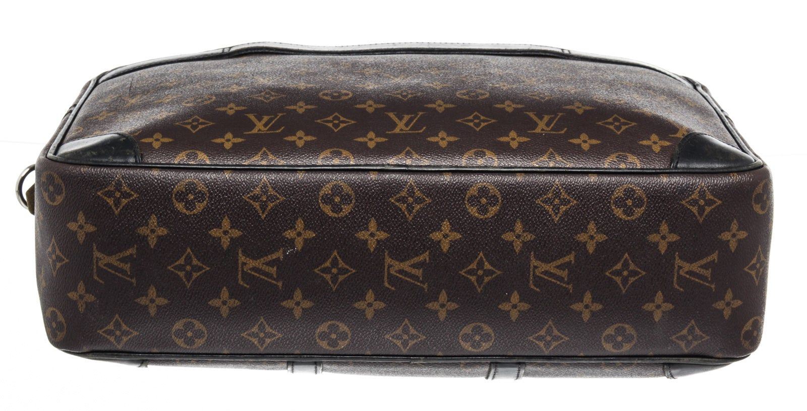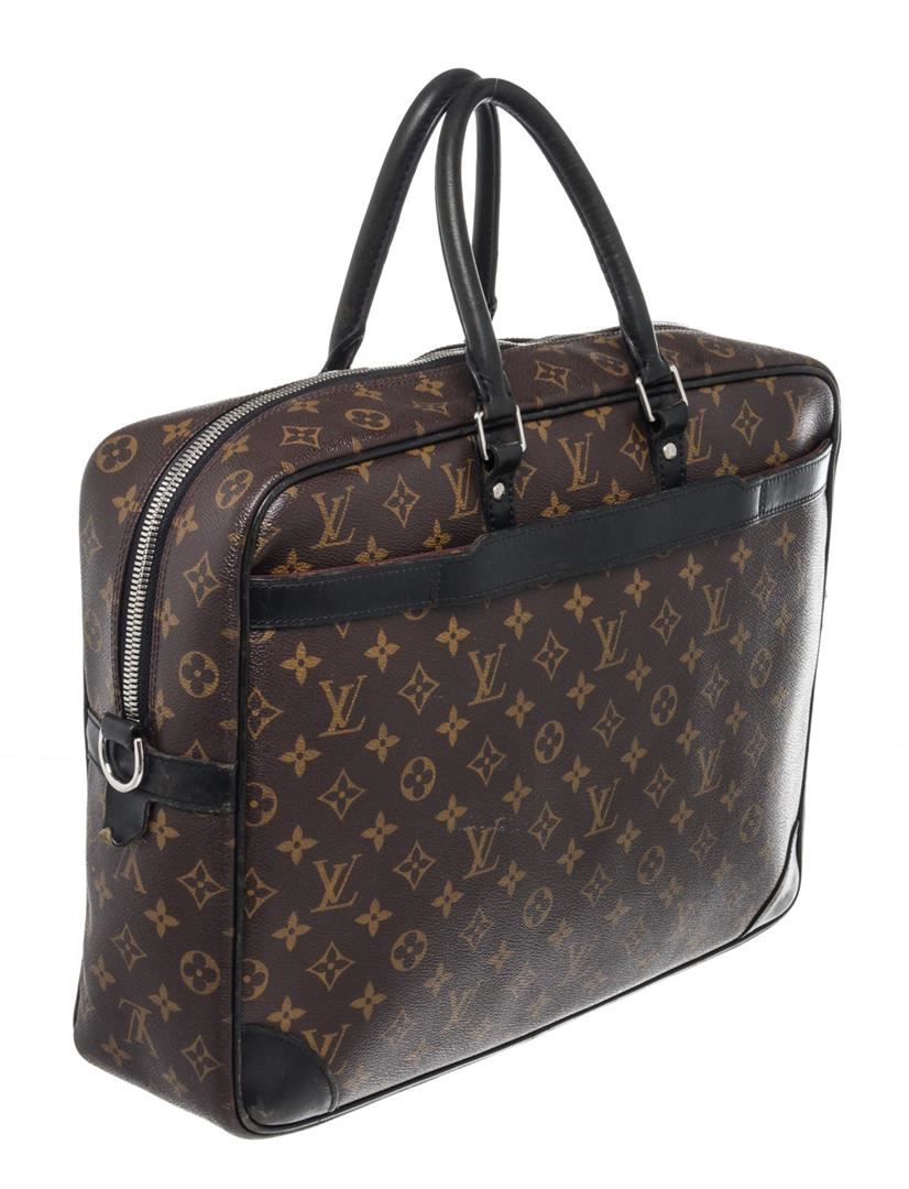Louis Vuitton Brown Porte Document Voyage Briefcases with monogram canvas gold-tone hardware, trim tan vachetta leather, interior three pocket, canvas lining, dual top handle and zipper closure.