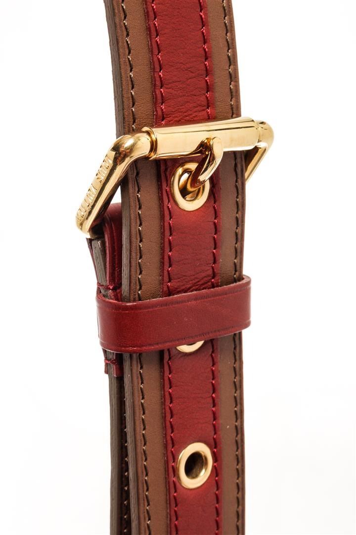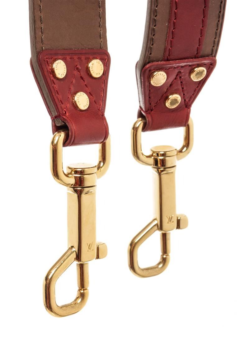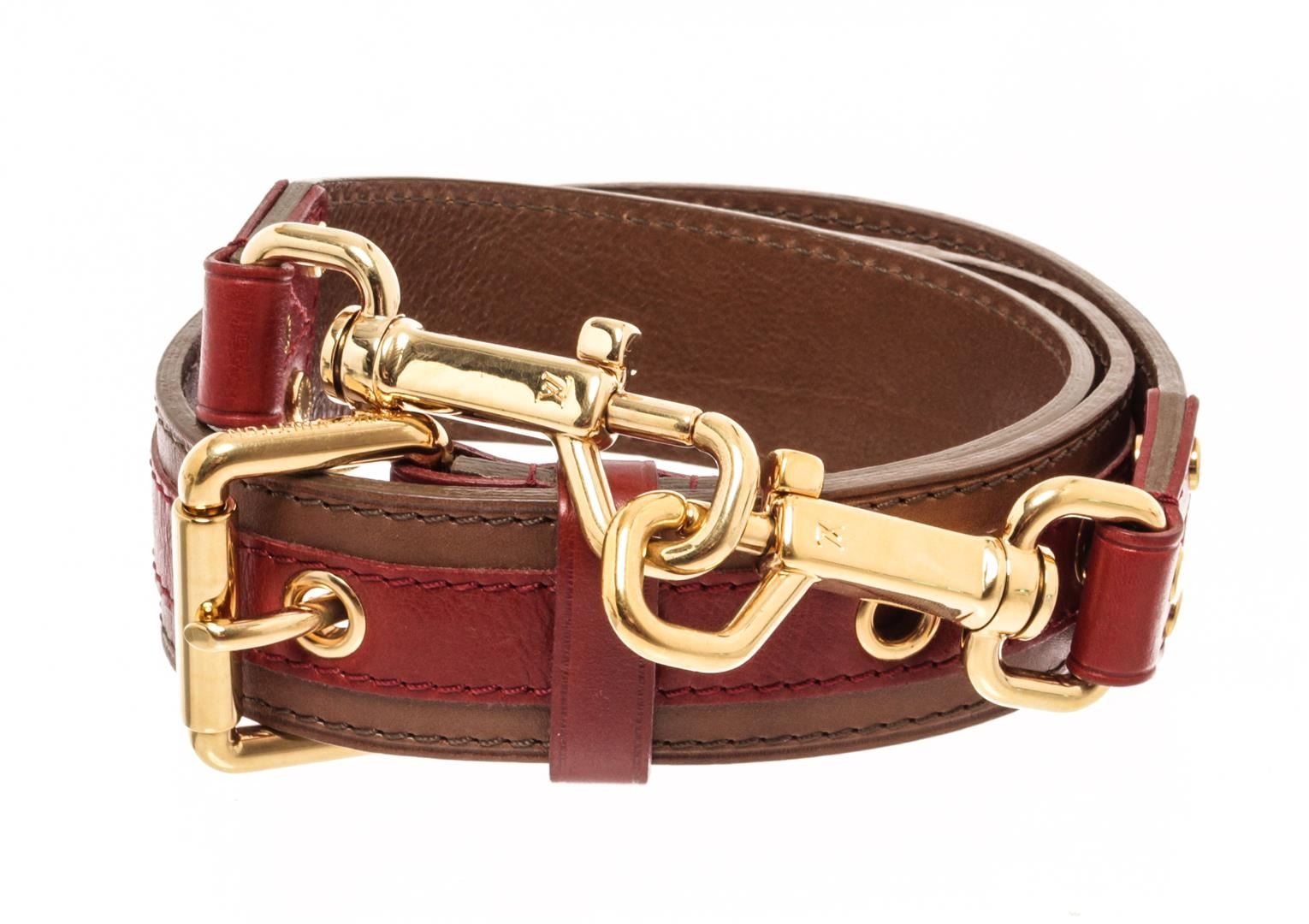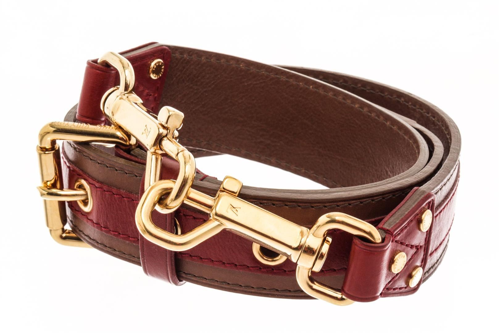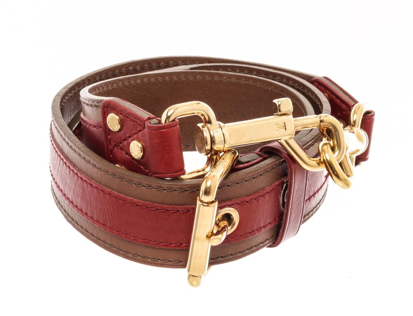 Louis Vuitton Brown Red Leather Aviator Strap. All available information is listed in the description and shown in the photos. Louis Vuitton Brown Red Leather Aviator Limited Edition strap with a red leather stripe, gold tone hardware, buckle closure.