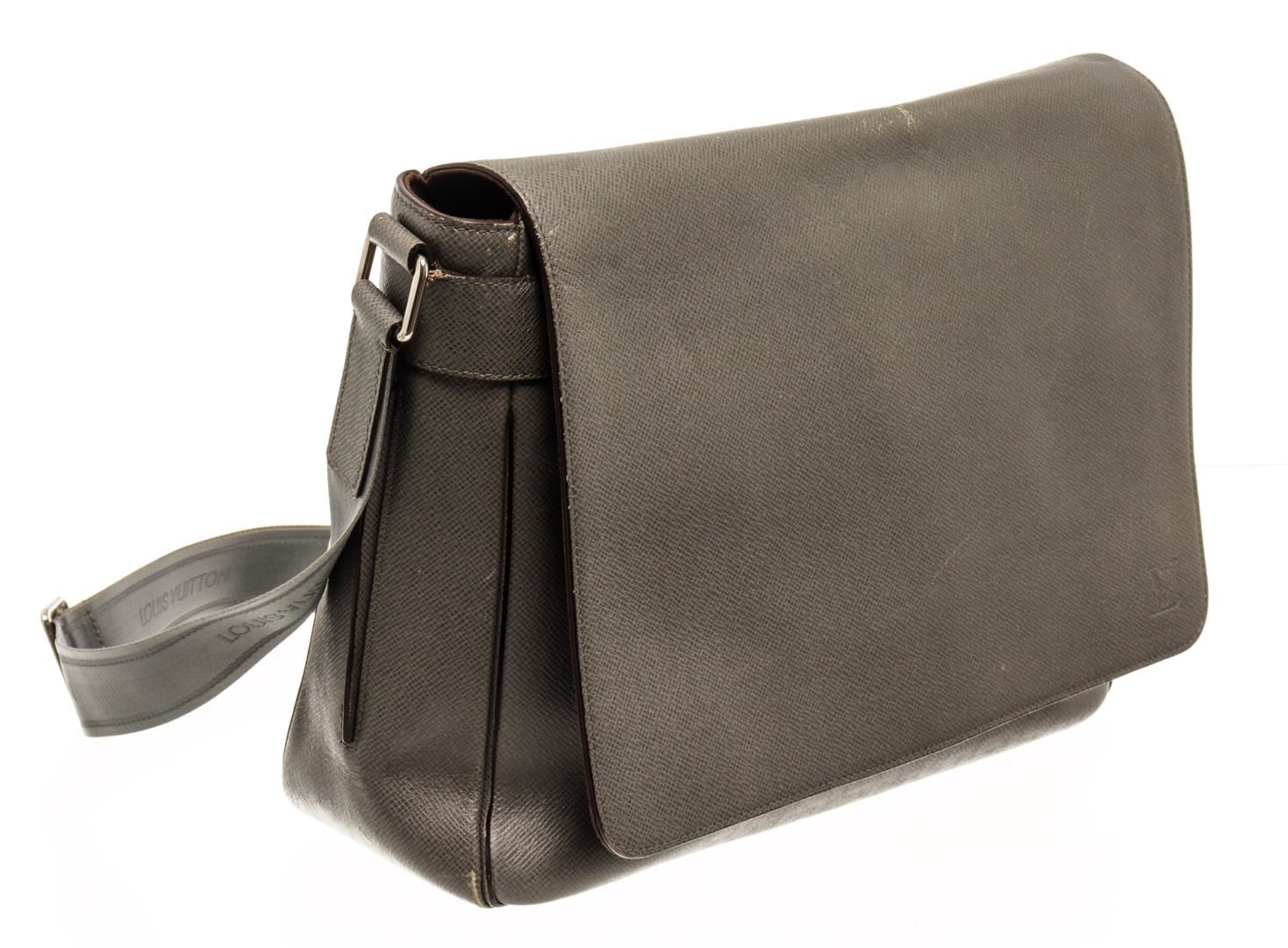 One Louis Vuitton Brown Roman GM Messenger Bag. Item is sold AS-IS. All available information is listed in the description and shown in the photo. Louis Vuitton Brown Roman GM Messenger Bag with gold-tone hardware, trim tan vachetta leather, three interior compartments pockets, canvas lining shoulder strap and flap closure.