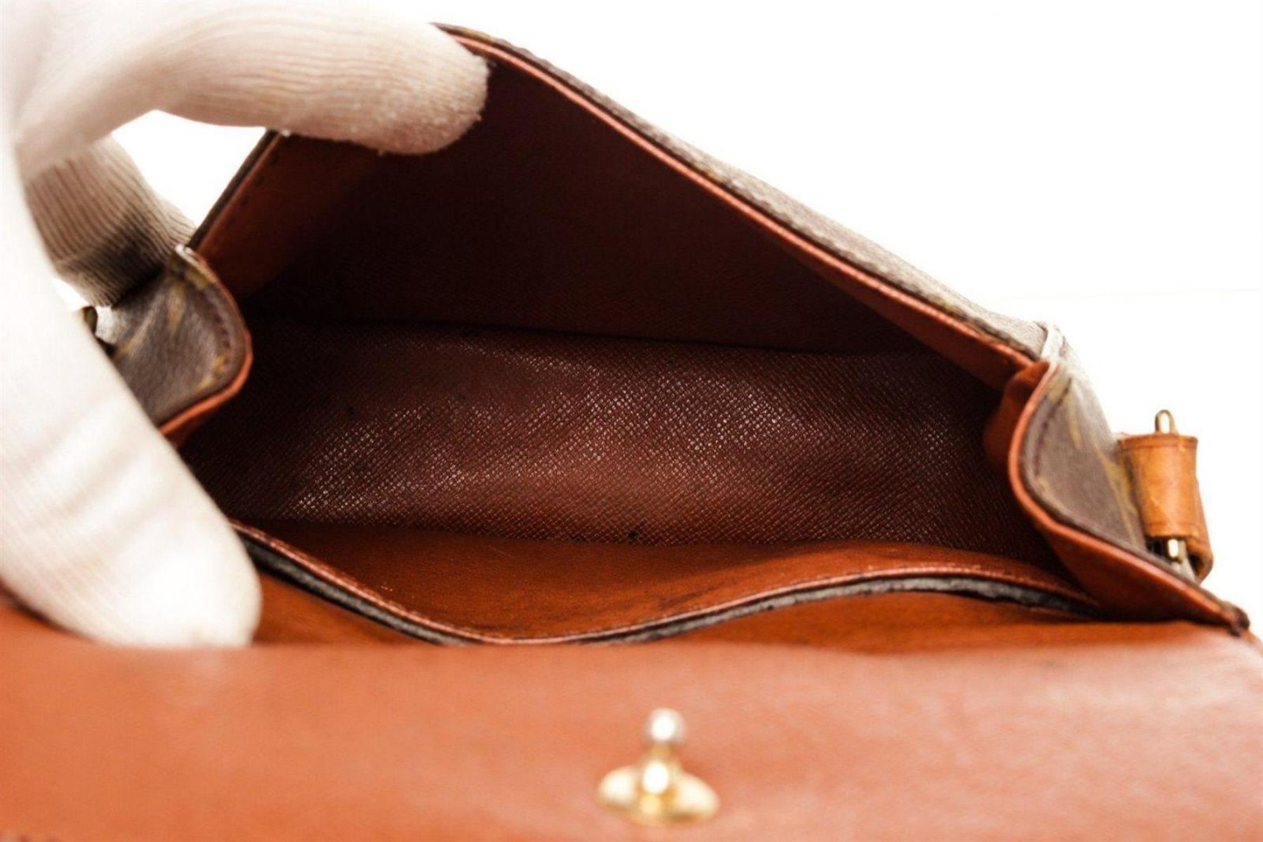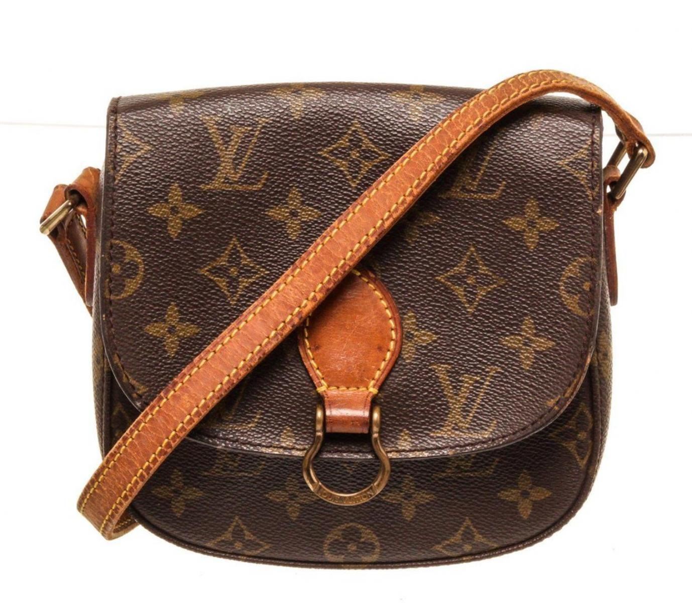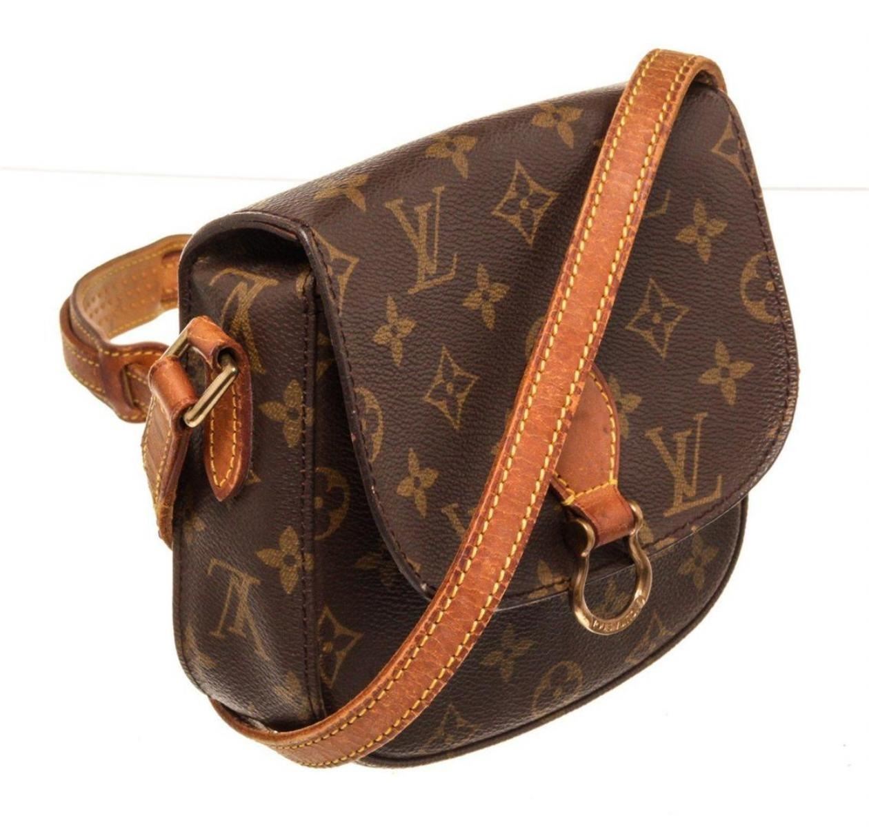 Louis Vuitton Brown St. Cloud MM Crossbody Bag with monogram canvas, gold-tone hardware, trim tan vachetta leather, interior zip pocket, adjustable shoulder strap and push-lock closure.