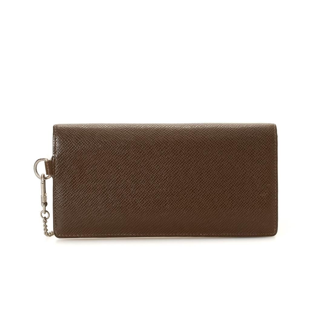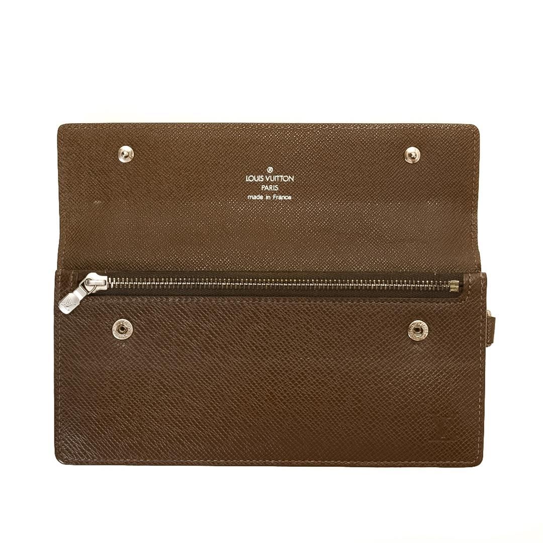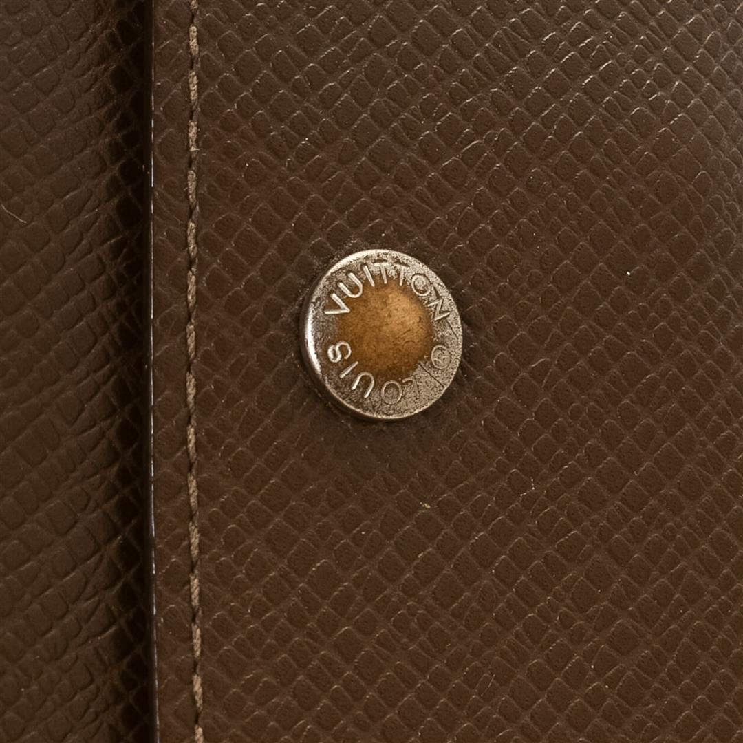 Louis Vuitton Brown Taiga Accordeon Wallet. Please see photos and description for all available information! Louis Vuitton Brown Taiga Accordeon Wallet with gold-tone hardware, chain-link strap, snap closure.