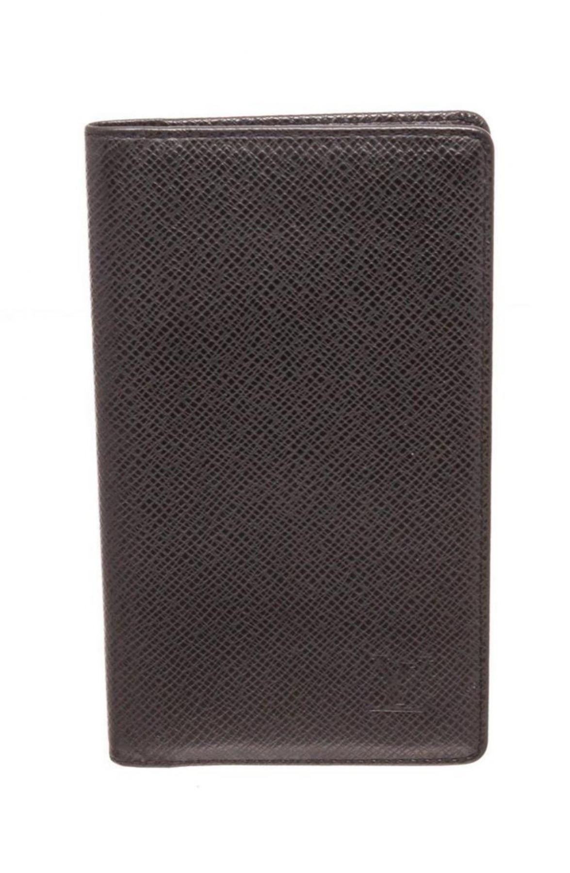 Louis Vuitton Brown Taiga Leather Checkbook Wallet with silver-tone hardware, debossed logo accent at front, tonal Taiga leather lining, foil-stamped logo accent, three interior slit compartments and bifold closure. Measurements: Length: 0.25 in / 1 cm Width: 3.75 in / 10 cm 6.25 in / 16 cmCONDITION: Pre-Owned Good overall, please see photographs for detail.