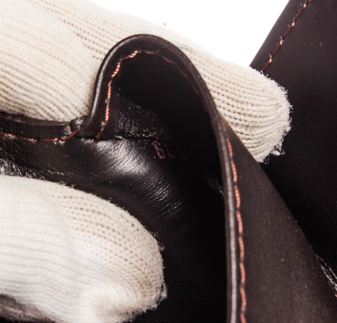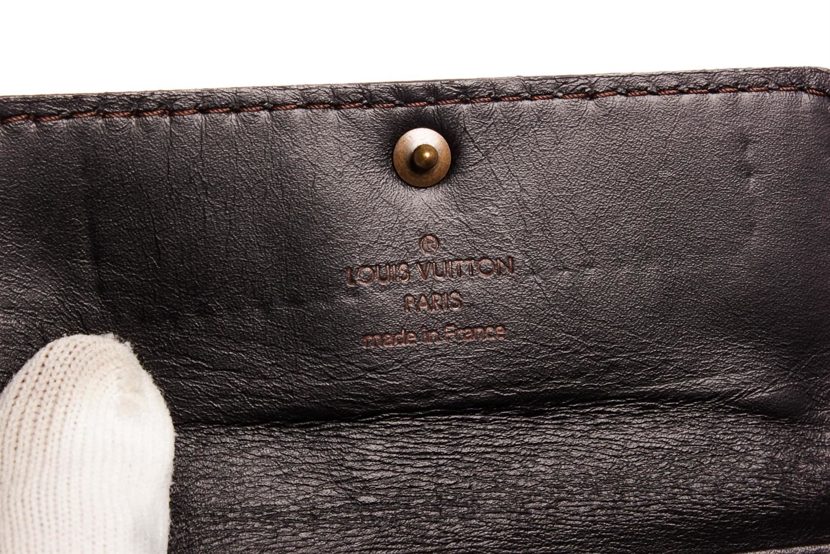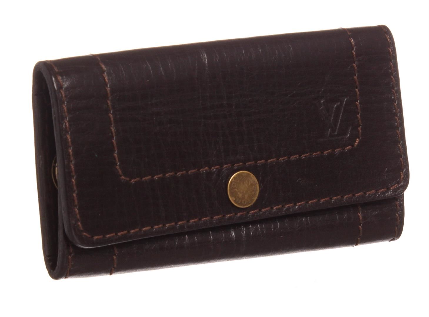 Dark brown Utah Leather Louis Vuitton 6 key case with leather interior featuring six key holders and snap closure at front.