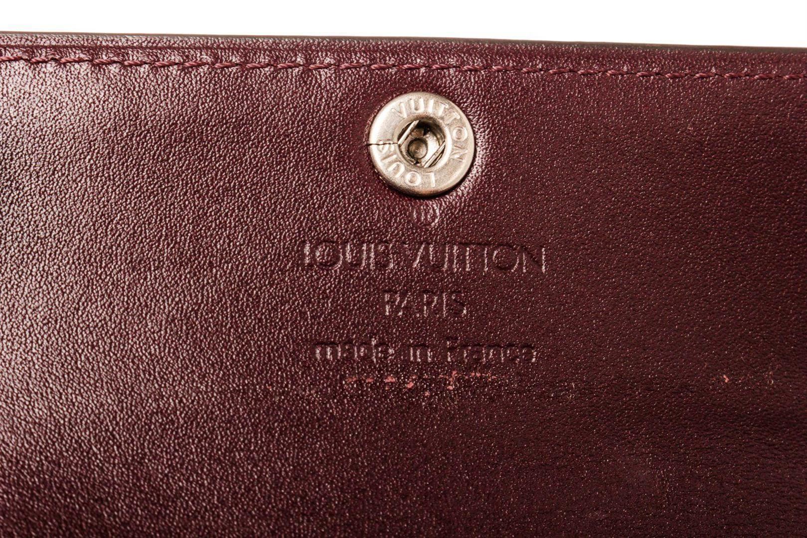 Louis Vuitton Brown Vernis Leather Ludlow Cardholder Wallet with monogram Vernis leather, gold-tone hardware, interior slip pockets and snap closure.
