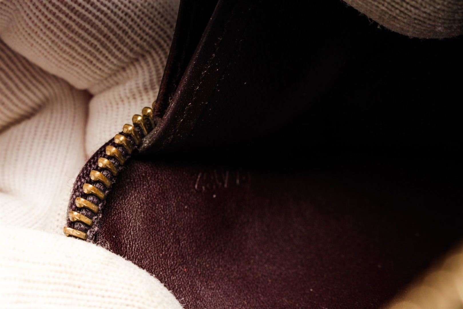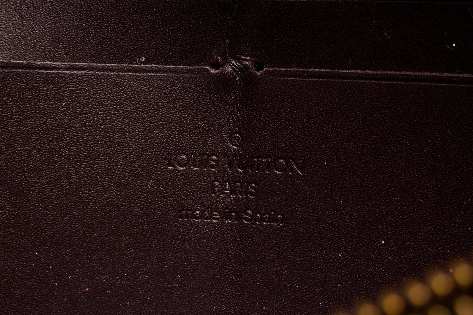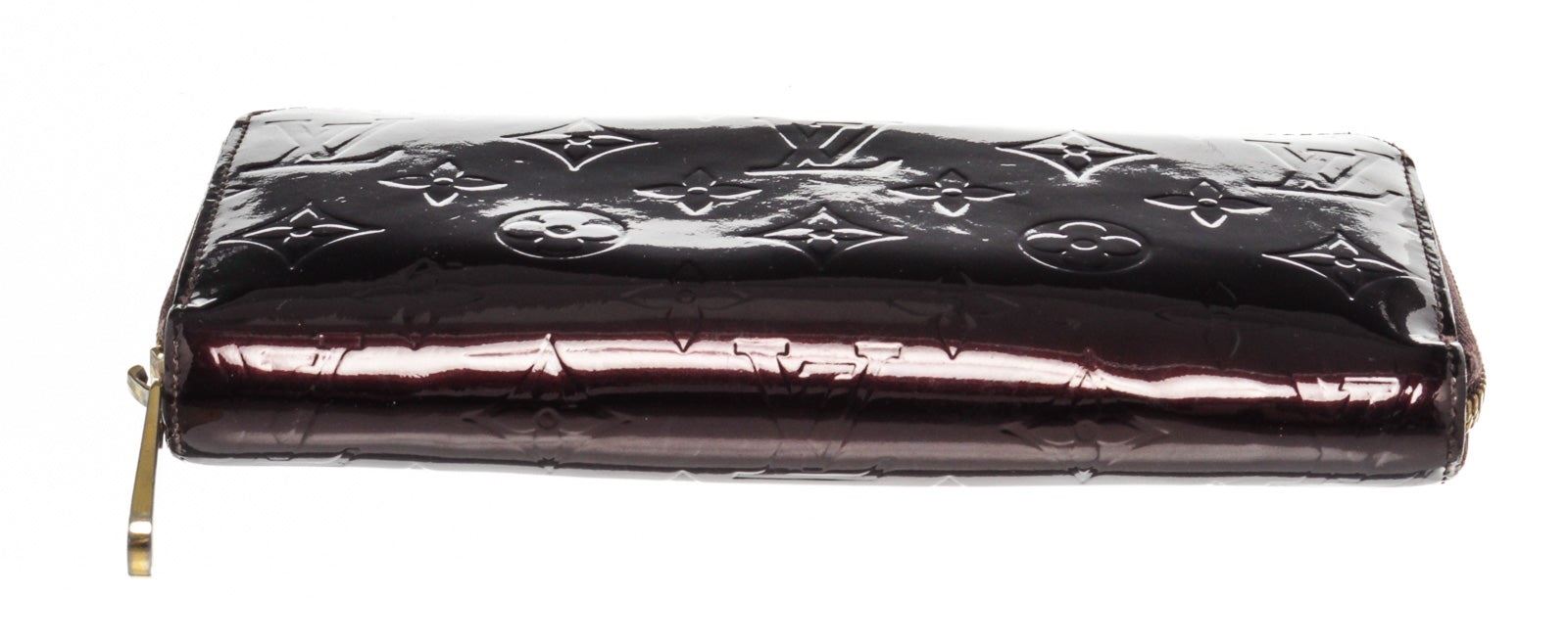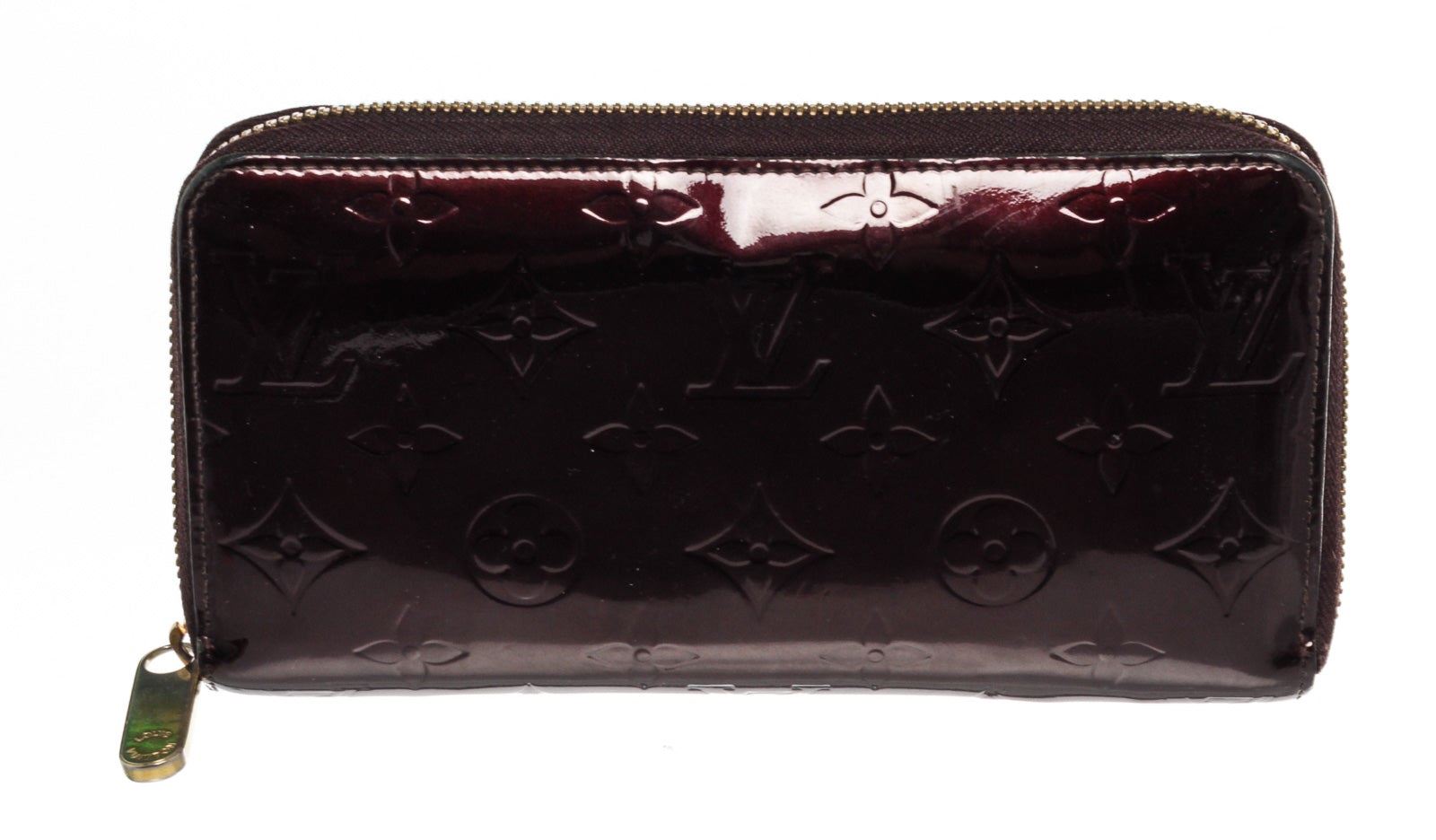 Louis Vuitton Brown Vernis Leather Zippy Wallet with vernis leather, gold-tone hardware, interior three compartments pockets and zipper closure.