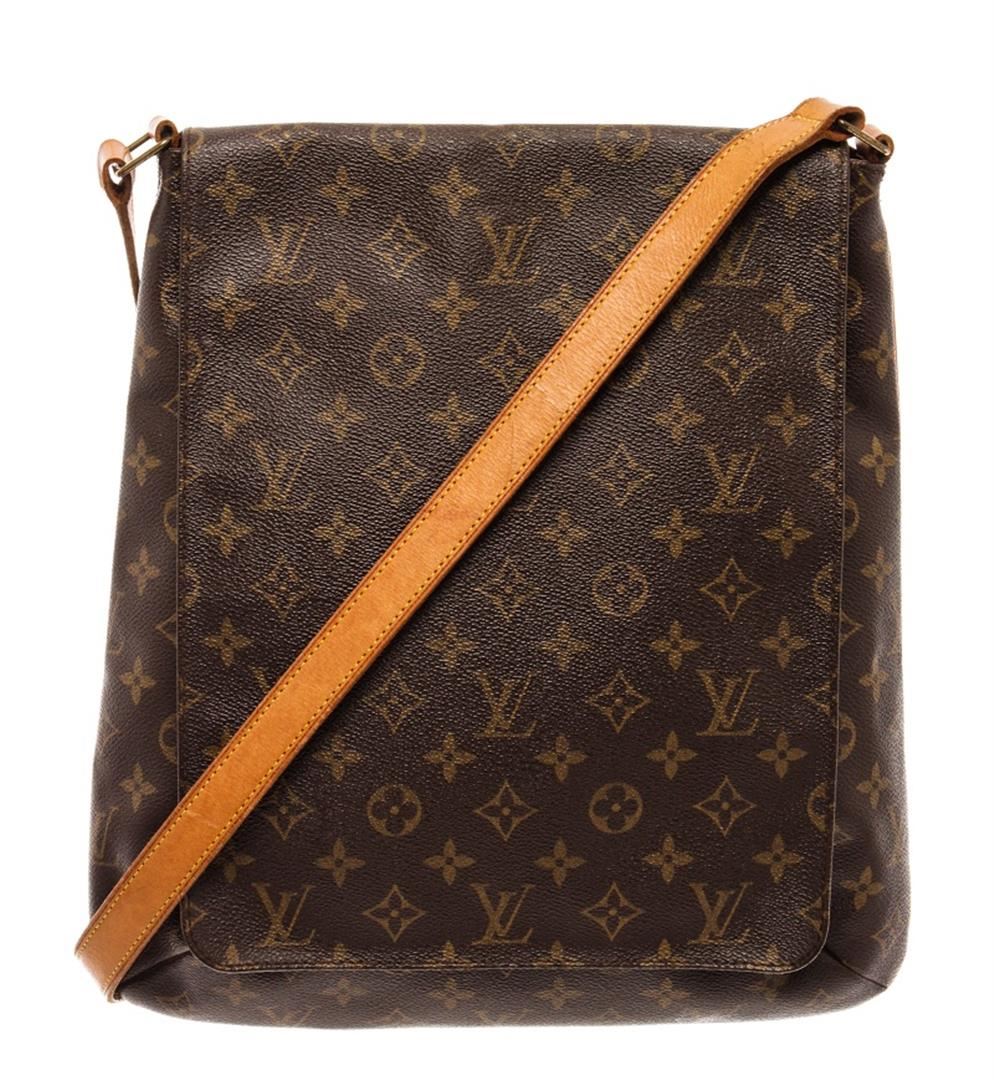 Louis Vuitton Brown and Tan Monogram Canvas Musette Salsa GM Shoulder Bag. All available information is listed in the description and shown in the photos. Louis Vuitton Brown and Tan Monogram Canvas Musette Salsa GM Shoulder Bag with brass hardware, tan vachetta leather trim, adjustable shoulder strap, marigold alcantara lining, dual pockets at interior wall and flap closure at front face. Height: 12.5" Width: 12" Depth: 0.25", Shoulder Strap Drop: 21" / 31.75 x 30.48 x 0.63 Cm