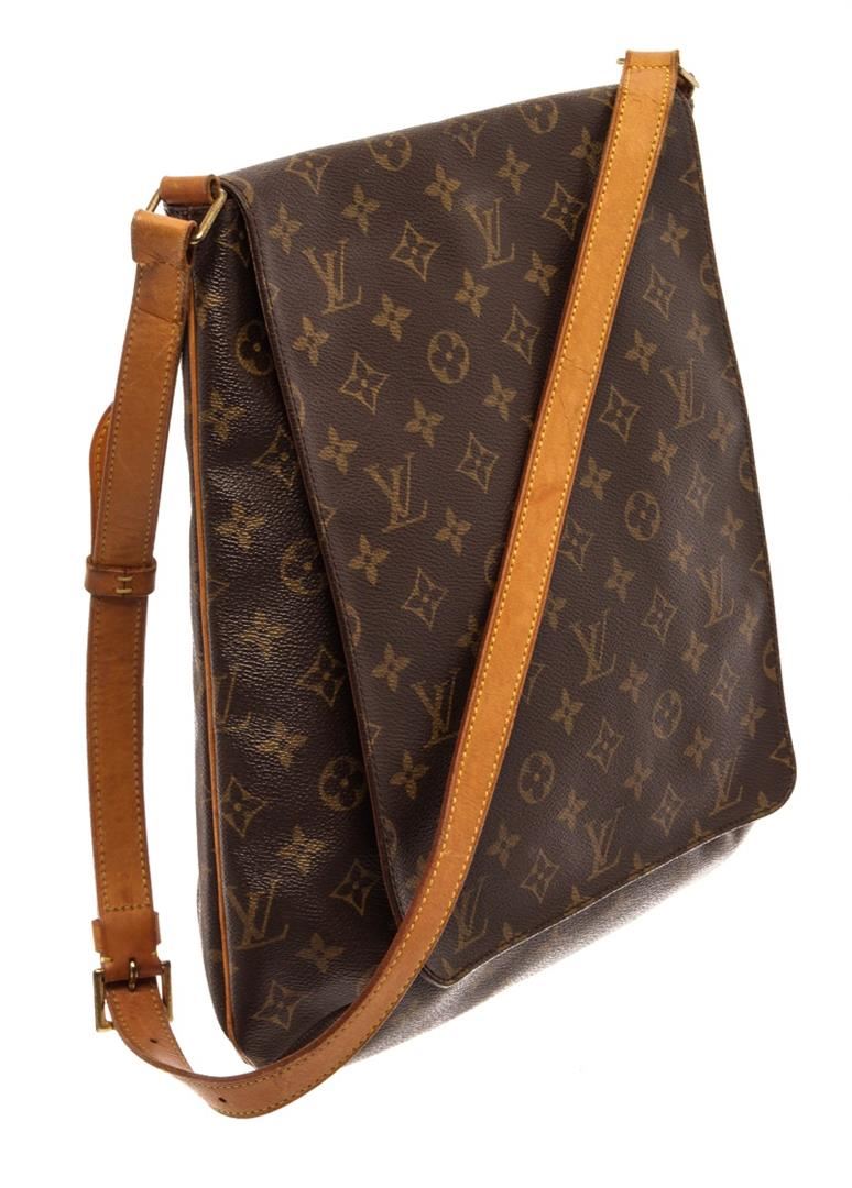 Louis Vuitton Brown and Tan Monogram Canvas Musette Salsa GM Shoulder Bag. All available information is listed in the description and shown in the photos. Louis Vuitton Brown and Tan Monogram Canvas Musette Salsa GM Shoulder Bag with brass hardware, tan vachetta leather trim, adjustable shoulder strap, marigold alcantara lining, dual pockets at interior wall and flap closure at front face. Height: 12.5" Width: 12" Depth: 0.25", Shoulder Strap Drop: 21" / 31.75 x 30.48 x 0.63 Cm