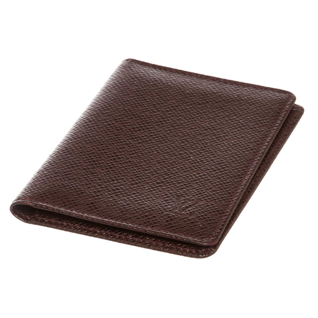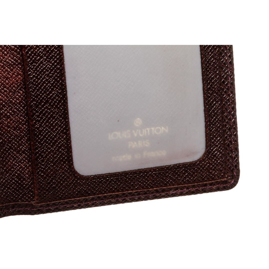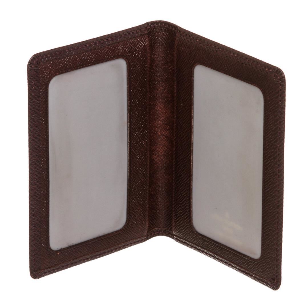 Burgundy Taiga leather Louis Vuitton ID holder with leather interior, dual ID slots at interior walls and fold-over flap closure.