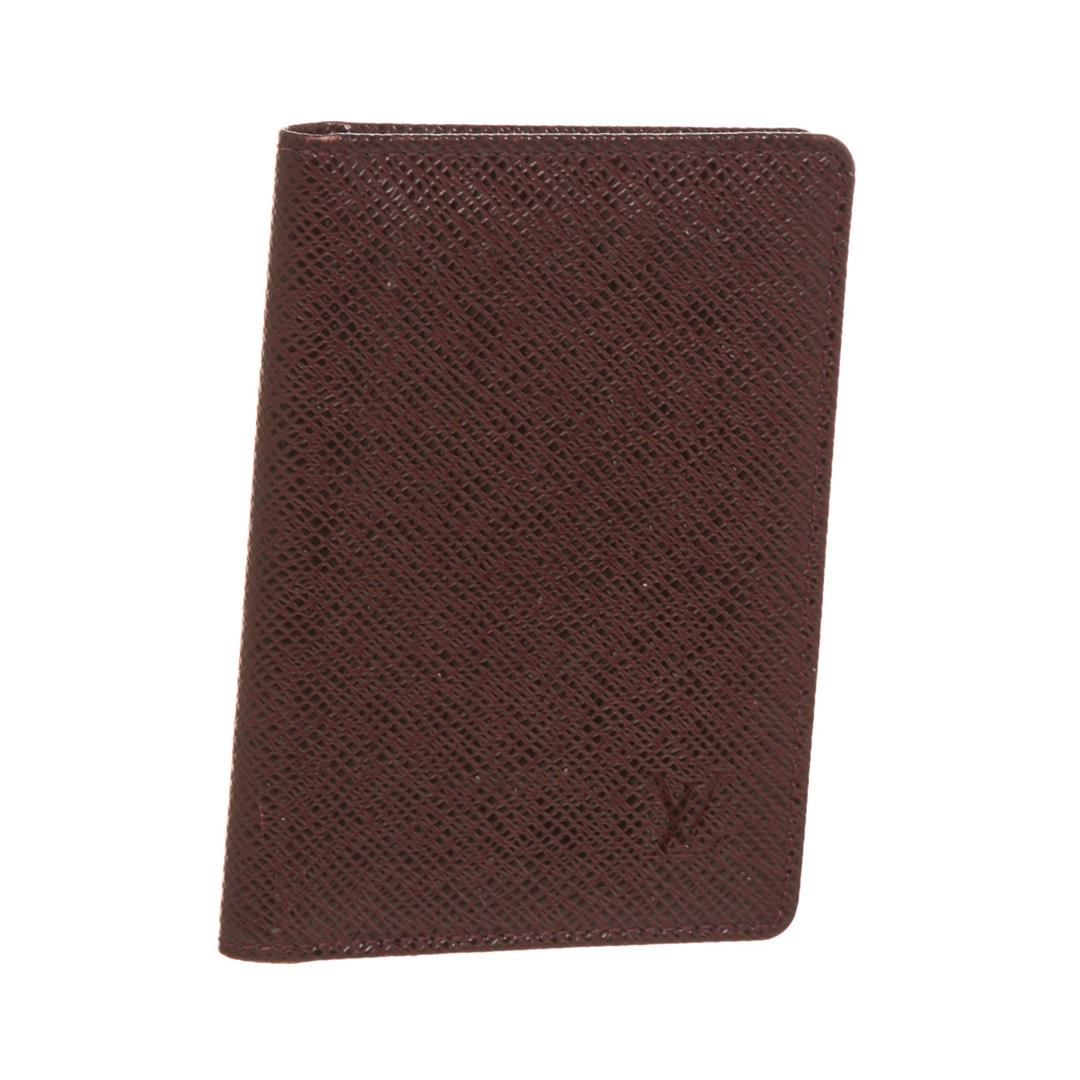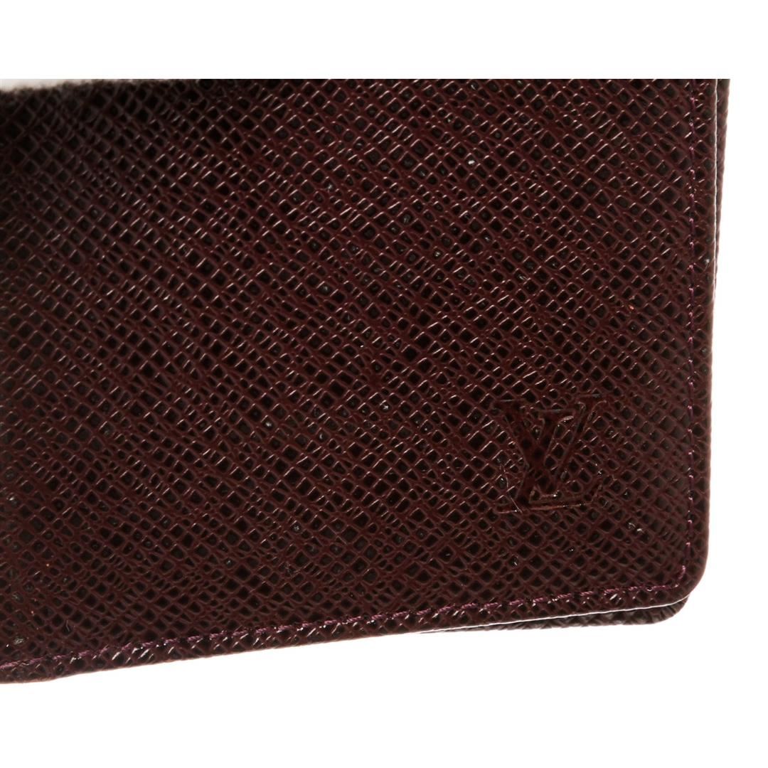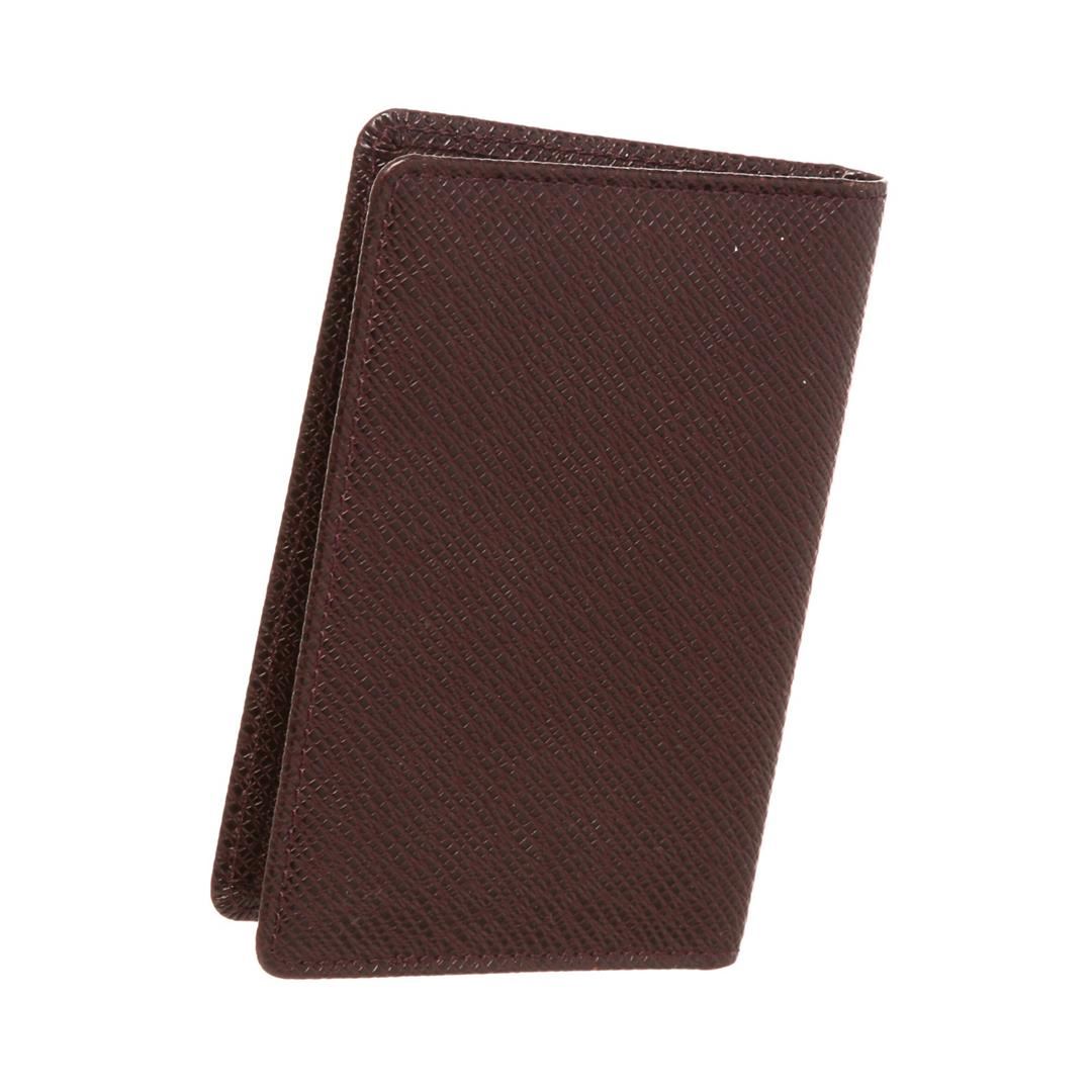 Burgundy Taiga leather Louis Vuitton ID holder with leather interior, dual ID slots at interior walls and fold-over flap closure.