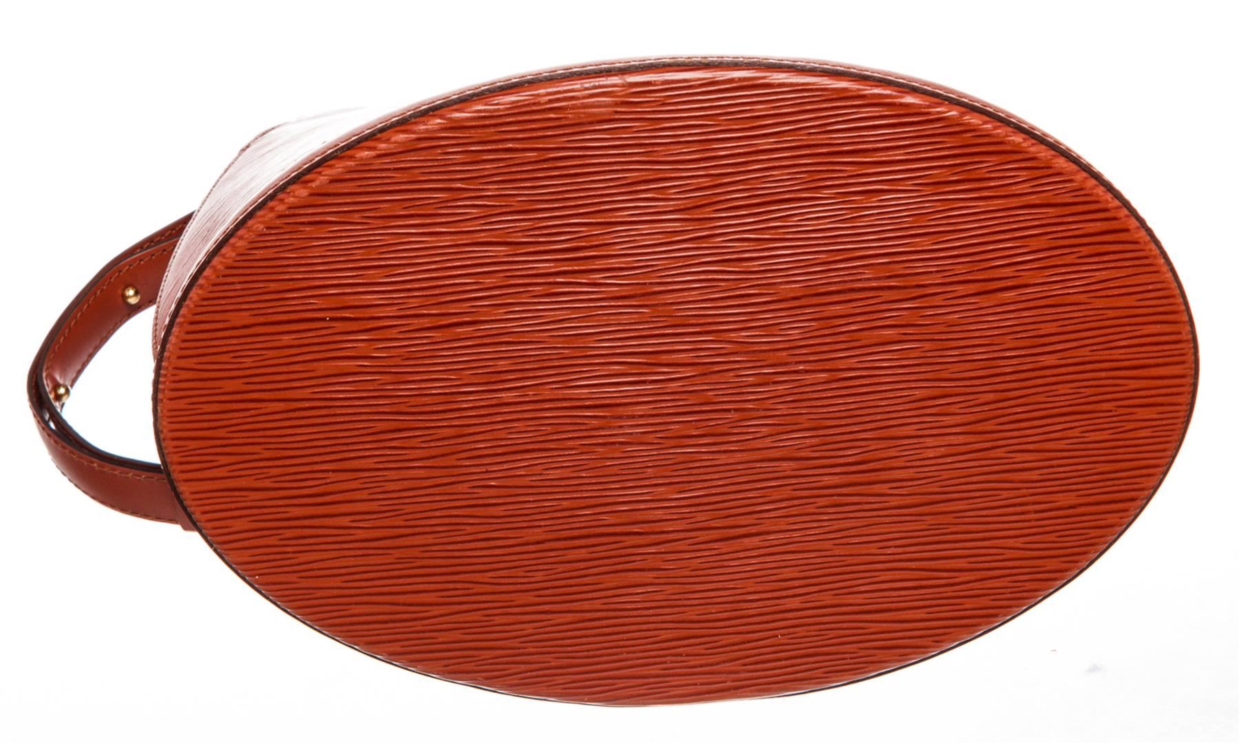 Epi leather Louis Vuitton Cluny bag with brass hardware, adjustable shoulder strap, embossed logo at front, Alcantara lining, single pocket at interior wall and turn-lock closure at front flap.