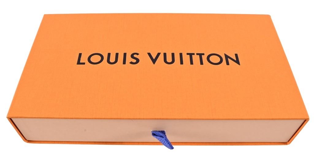 Compact design with colored leather zipper and lining. Like New in Original Box.