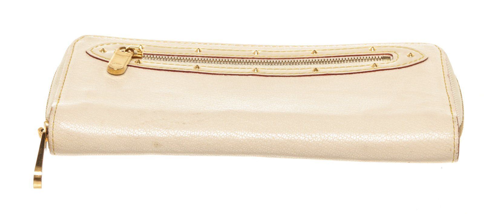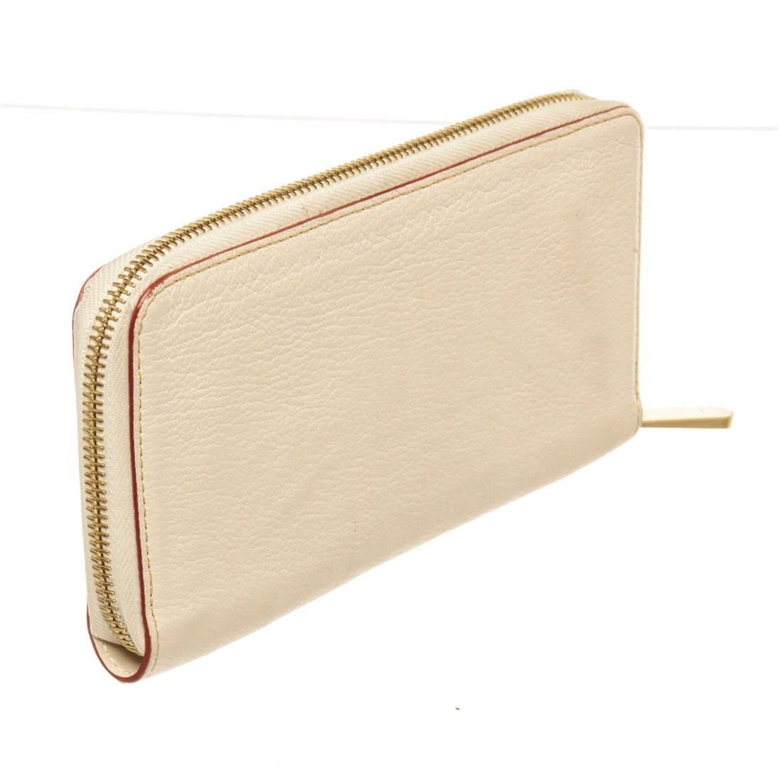 Louis Vuitton Cream Leather Zippy Wallet with leather, gold-tone hardware, trim tan vachetta leather, exterior zip pockets, interior three compartments pockets and zipper closure.