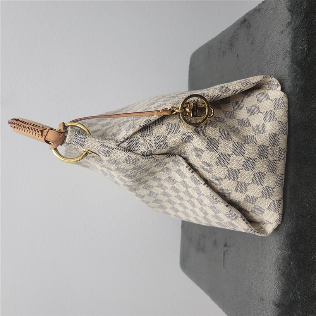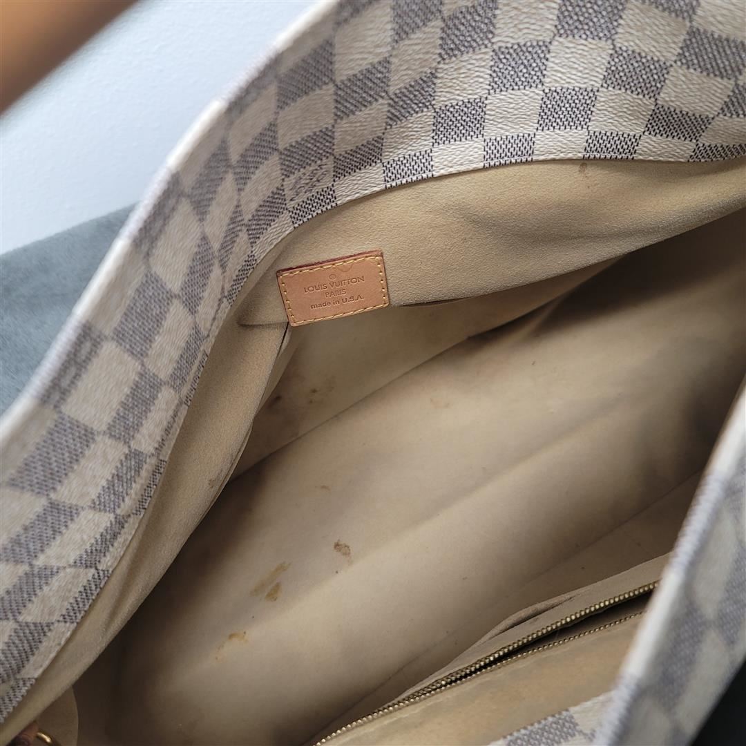 One Louis Vuitton Damier Azur "Artsy" Bag. About LV Damier: The Damier, which translates to "checkerboard" came to be in the year 1888 making for an understated but equally as iconic coated canvas print, perfect for everyday wear, in tonal brown, white and blue, or graphite. Features: Leather Top Handle Single Zip Pocket And Six Slip Pockets At Interior Coated Canvas Microfiber Lining Gold Hardware Details: Length: 16.5" (41 cm) Height: 12.75" (32 cm) Depth: 7.5" (19 cm) Strap Drop: 7" (17 cm) Made in United States 2018
