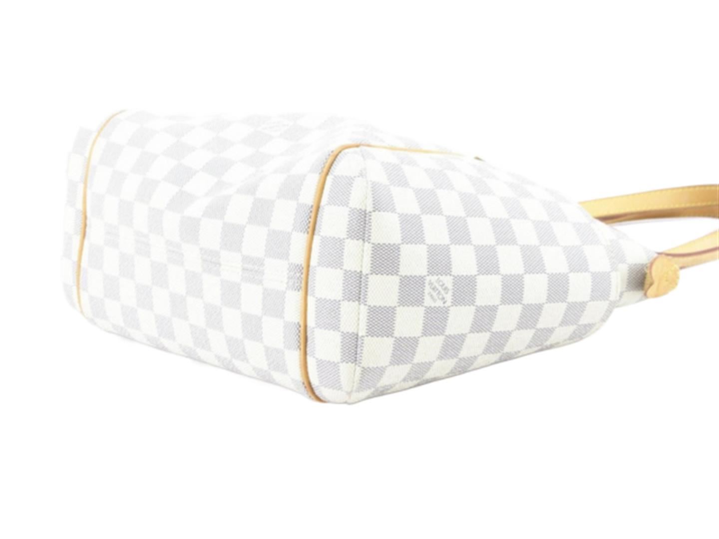 One Louis Vuitton Damier Azur Canvas Leather Totally PM Tote Bag. Item is sold AS-IS. All available information is listed in the description and shown in the photo. Ivory and navy Damier Azur coated canvas Louis Vuitton Totally PM with gold-tone hardware, tan vachetta leather trim, dual flat shoulders straps, dual slit pockets at exterior, neutral canvas lining, dual slit pockets at interior walls and zip closure at top. . Height: 10.5" Width: 15" Depth: 5.5" Shoulder Strap Drop: 9.5"