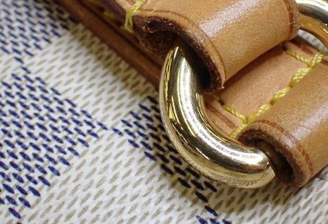 One Louis Vuitton Damier Azur Canvas Leather Totally PM Tote Bag. Item is sold AS-IS. All available information is listed in the description and shown in the photo. Ivory and navy Damier Azur coated canvas Louis Vuitton Totally PM with gold-tone hardware, tan vachetta leather trim, dual flat shoulders straps, dual slit pockets at exterior, neutral canvas lining, dual slit pockets at interior walls and zip closure at top. . Height: 10.5" Width: 15" Depth: 5.5" Shoulder Strap Drop: 9.5"