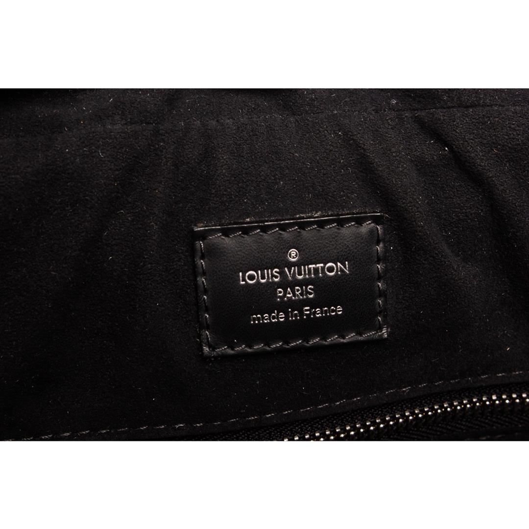 Louis Vuitton dark blue Damier Cobalt coated canvas Porte Document Business bag with black leather trim, silver-tone hardware, black canvas lining, interior zip pocket, four flat, and two pen loops. Exterior zipper pocket, dual rolled top handles, adjustable removable strap, and two-way zip top closure.