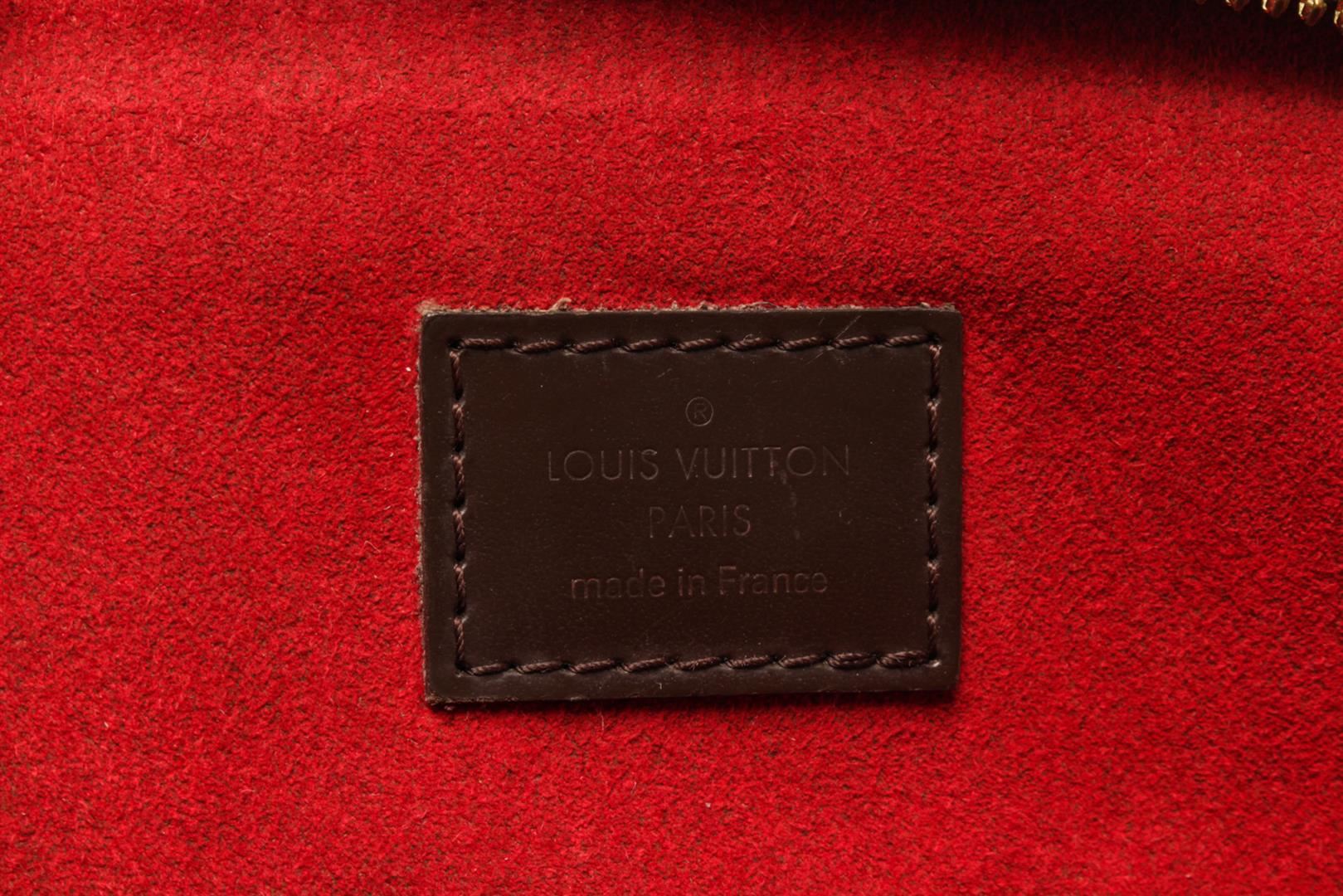 One Louis Vuitton Damier Ebene Canvas And Leather Trevi Pm Bag. Item is sold AS-IS. All available information is listed in the description and shown in the photo. louis vuitton damier ebene canvas and leather trevi pm bag with gold-tone hardware, protective metal feet, and a top zip that open. L:13.38", W:5.90", H:9.44" / Length:34 cm, Width:15 cm, Height:24 cm