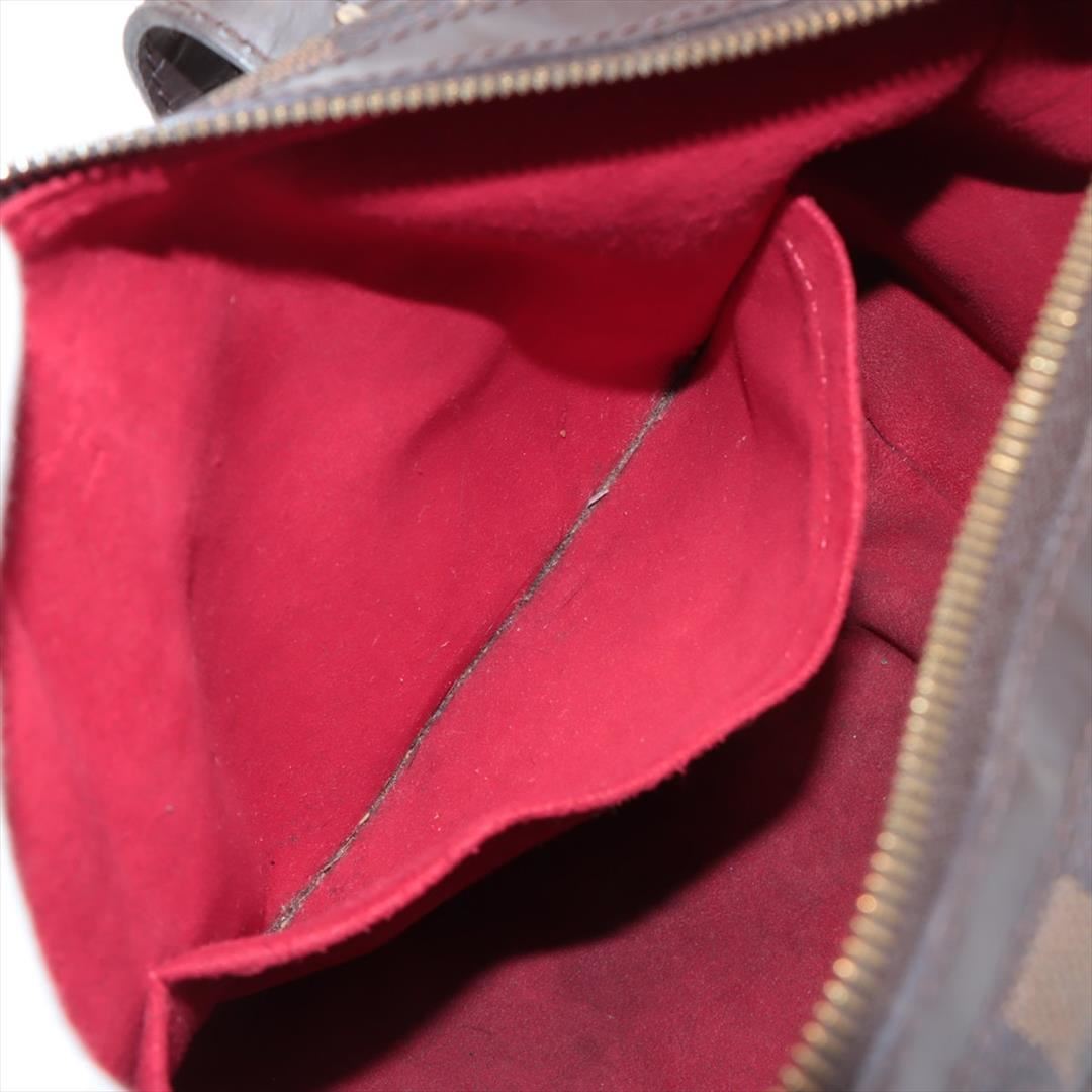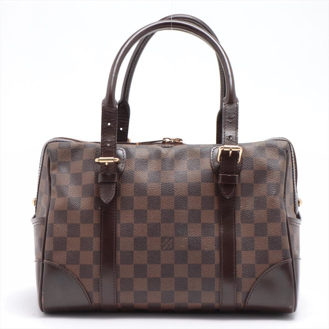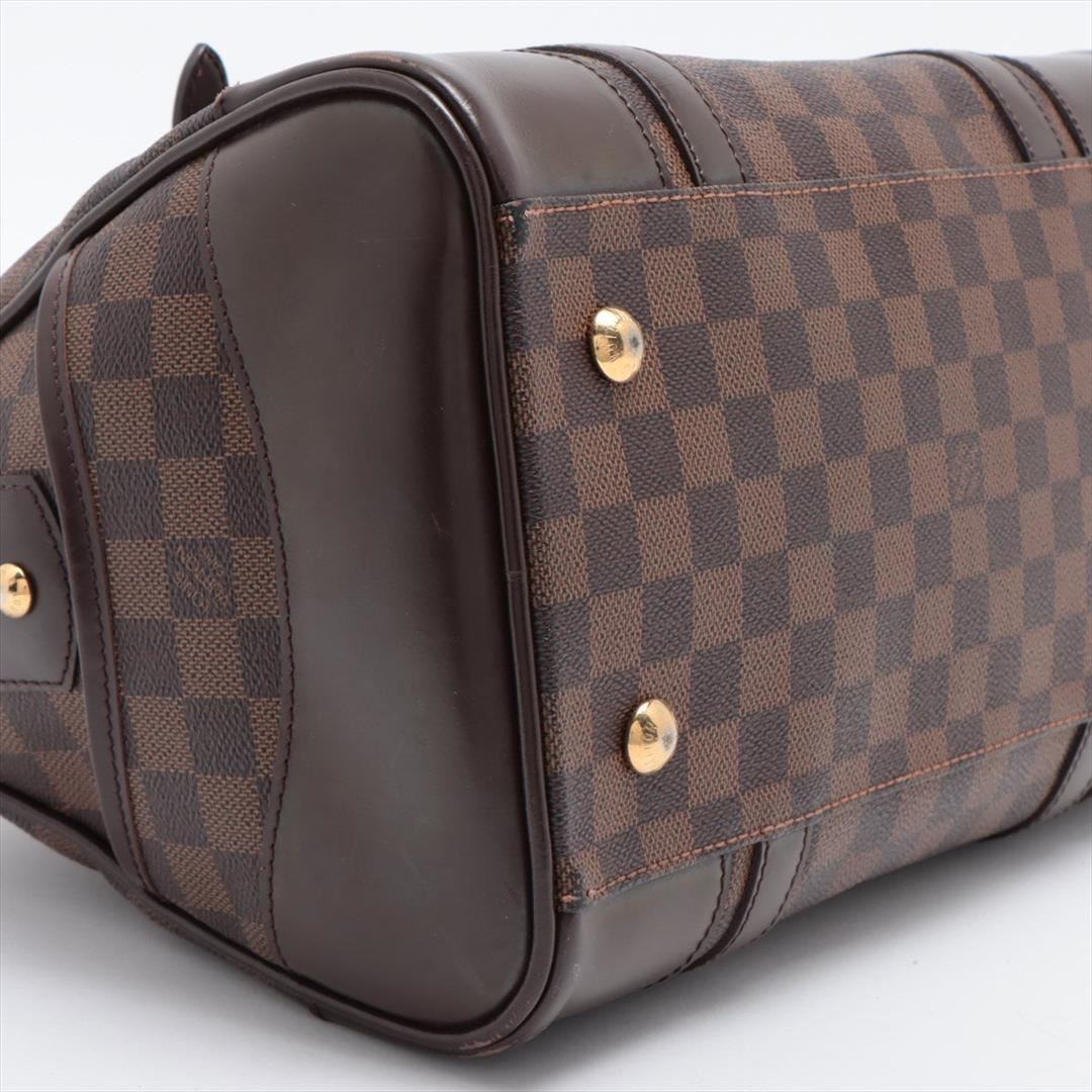 Louis Vuitton Damier Ebene Canvas Leather Berkeley Satchel Bag. Please see photos and description for all available information! Brown Damier Ebene coated canvas Louis Vuitton Berkeley bag with dark brown leather trim, gold-tone hardware, red Alcantara mi