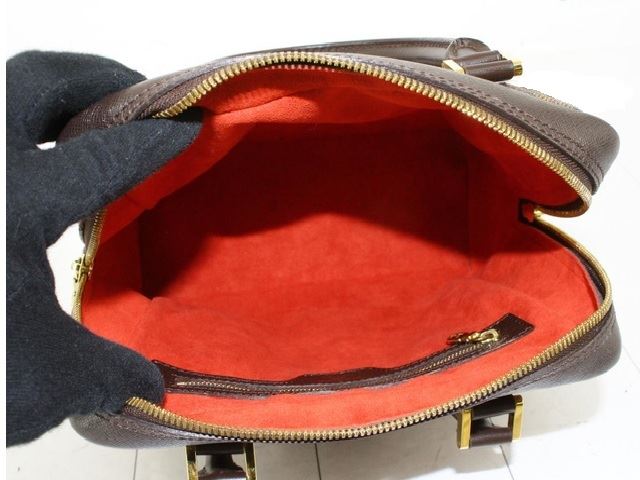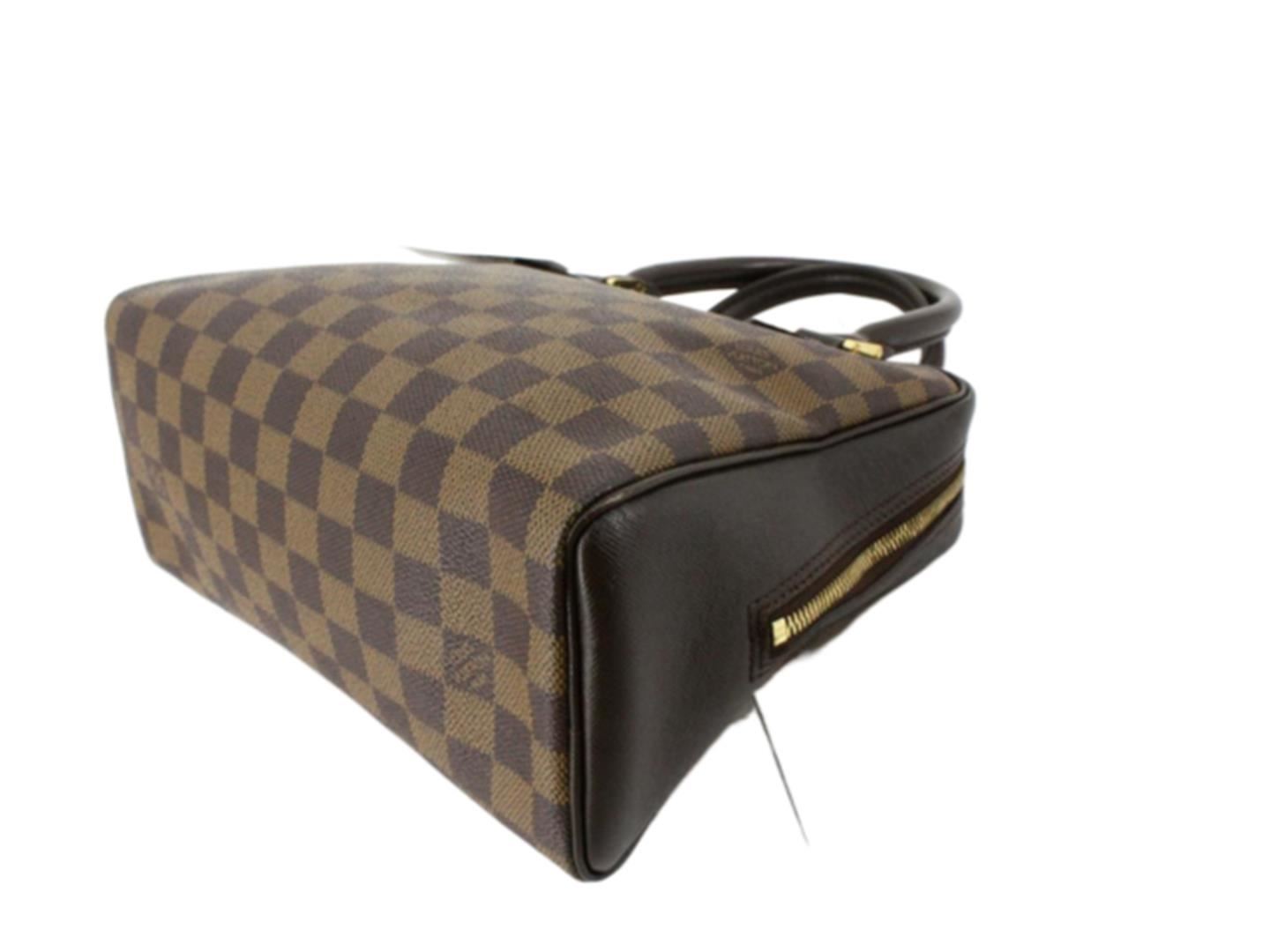 Louis Vuitton Damier Ebene Canvas Leather Brera Handbag. All available information is listed in the description and shown in the photos. Brown Damier Ebene coated canvas Louis Vuitton Brera handbag with gold-tone hardware, dark brown Taiga leather trim, dual rolled top handles, red Alcantara lining, single pocket with zip closure at interior wall and zip closure at top. . 9.5"x4"x8"xBag Drop:4.25"/24.1cmx10.1cmx20.3cmxBag Drop:10.8cm