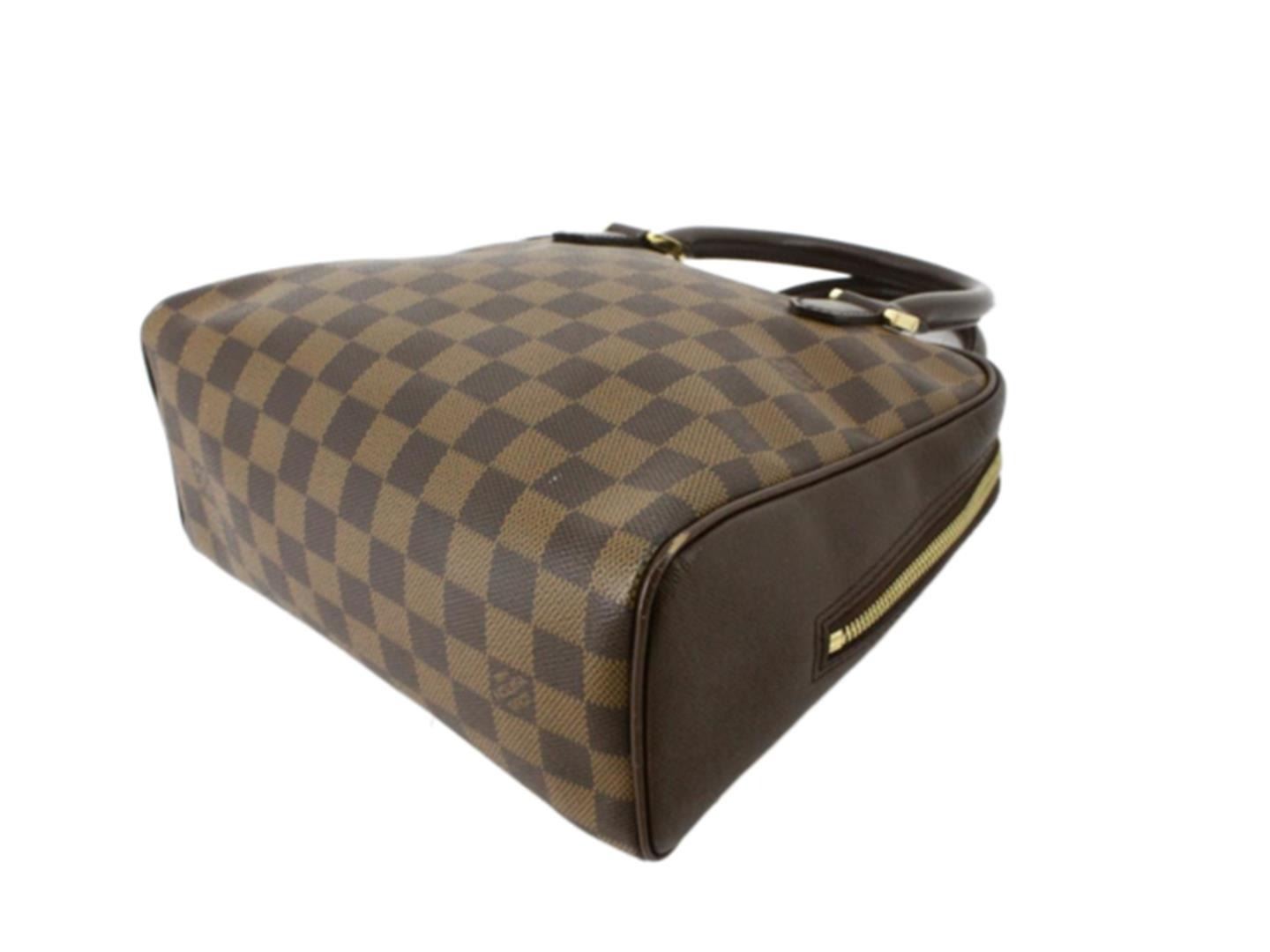 Louis Vuitton Damier Ebene Canvas Leather Brera Handbag. All available information is listed in the description and shown in the photos. Brown Damier Ebene coated canvas Louis Vuitton Brera handbag with gold-tone hardware, dark brown Taiga leather trim, dual rolled top handles, red Alcantara lining, single pocket with zip closure at interior wall and zip closure at top. . 9.5"x4"x8"xBag Drop:4.25"/24.1cmx10.1cmx20.3cmxBag Drop:10.8cm
