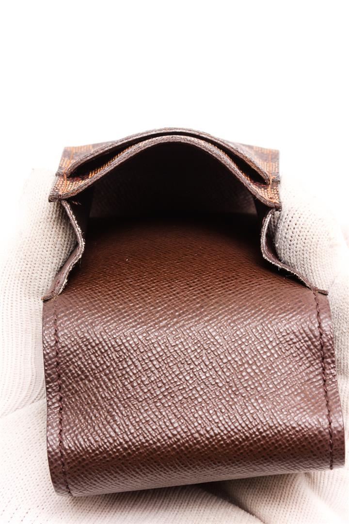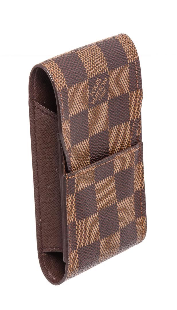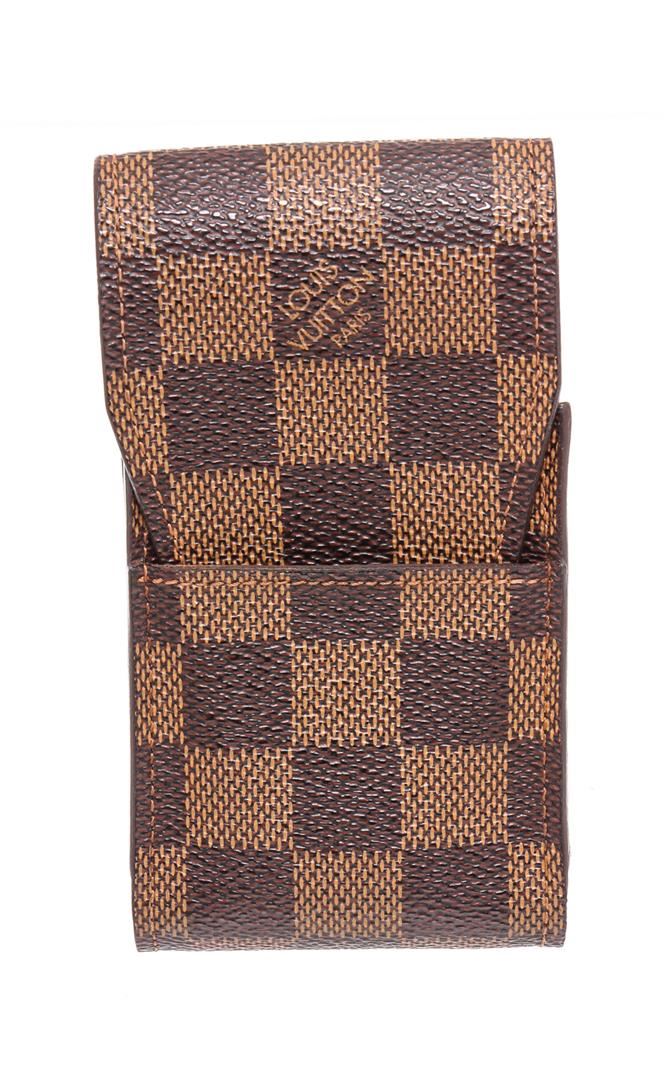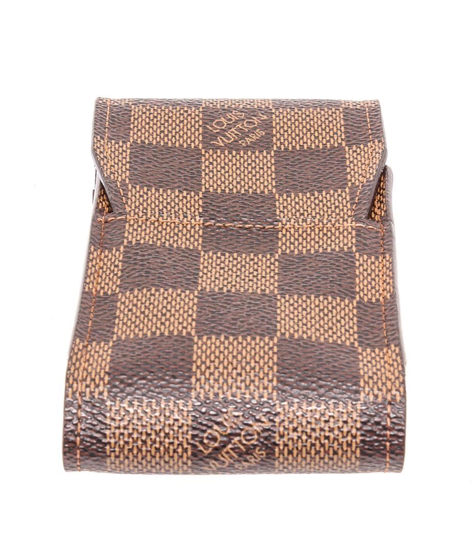 Brown Damier Ebene coated canvas Louis Vuitton cigarette holder with leather lining and tab insert flap closure at front.