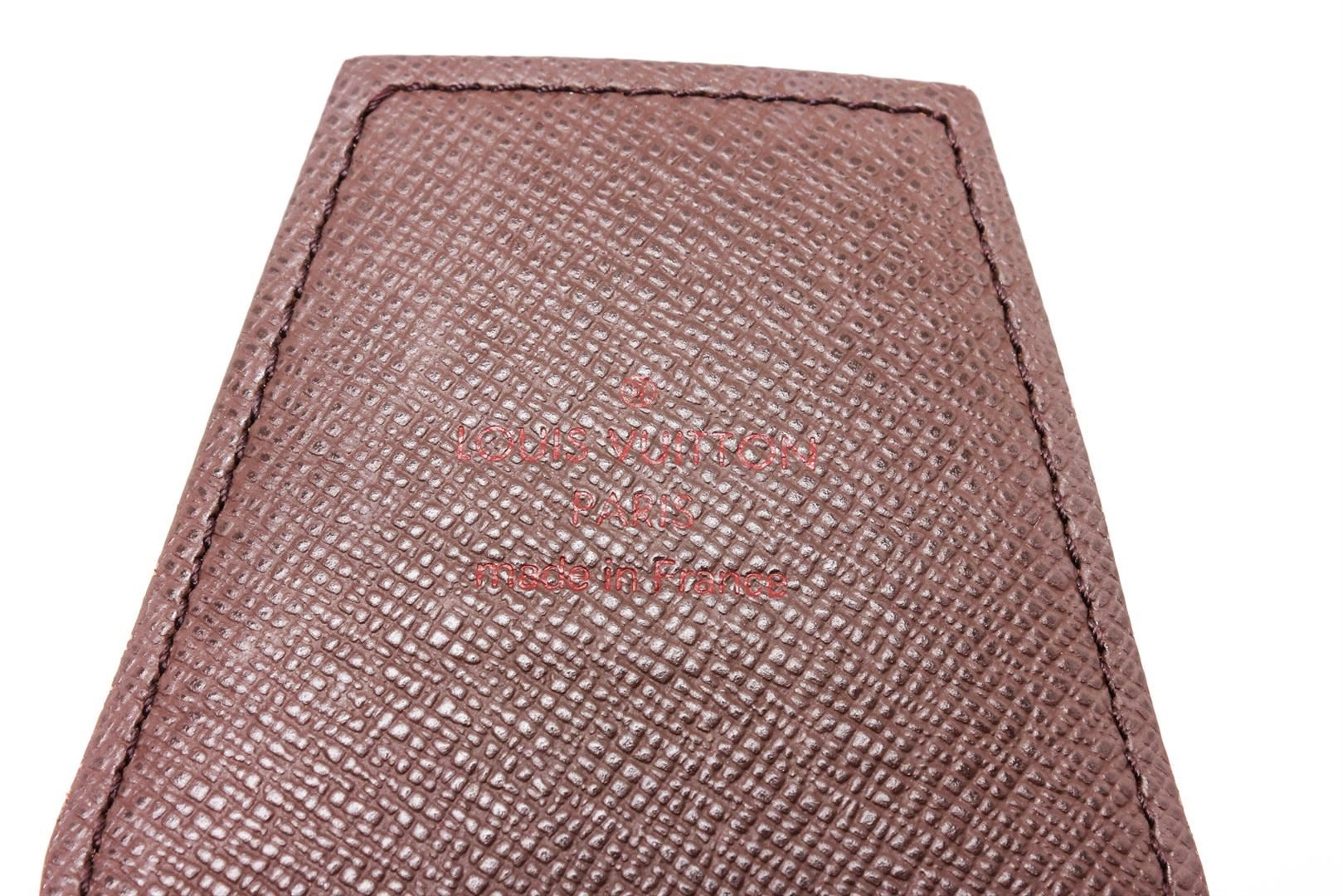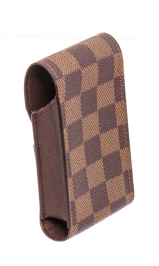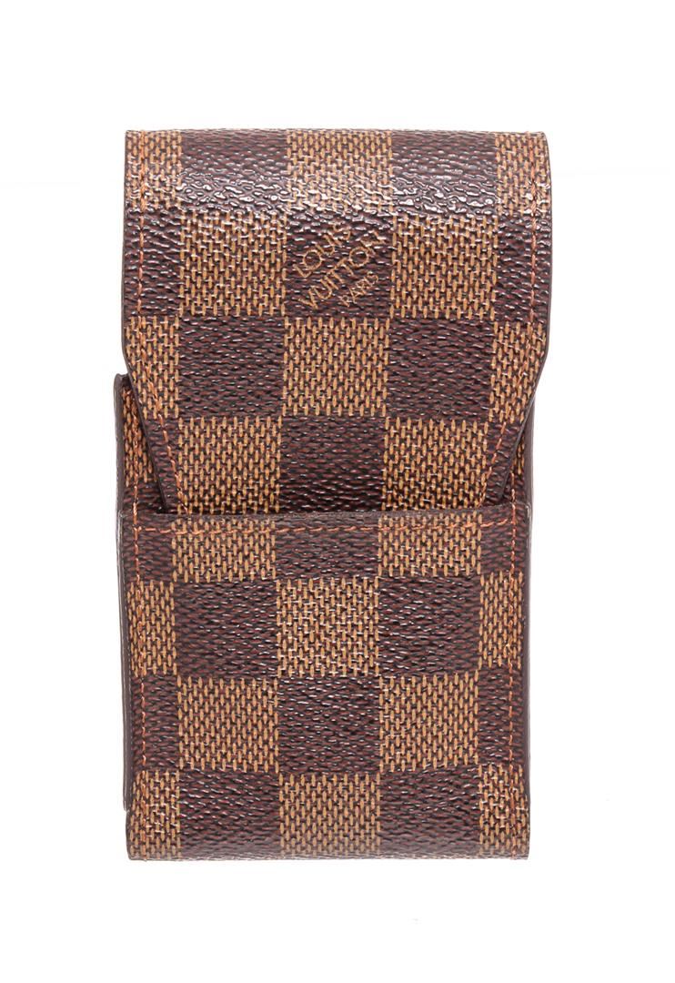 Brown Damier Ebene coated canvas Louis Vuitton cigarette holder with leather lining and tab insert flap closure at front.