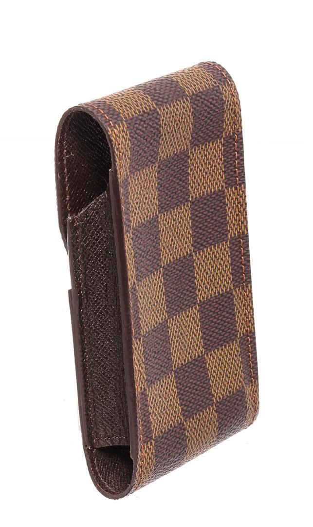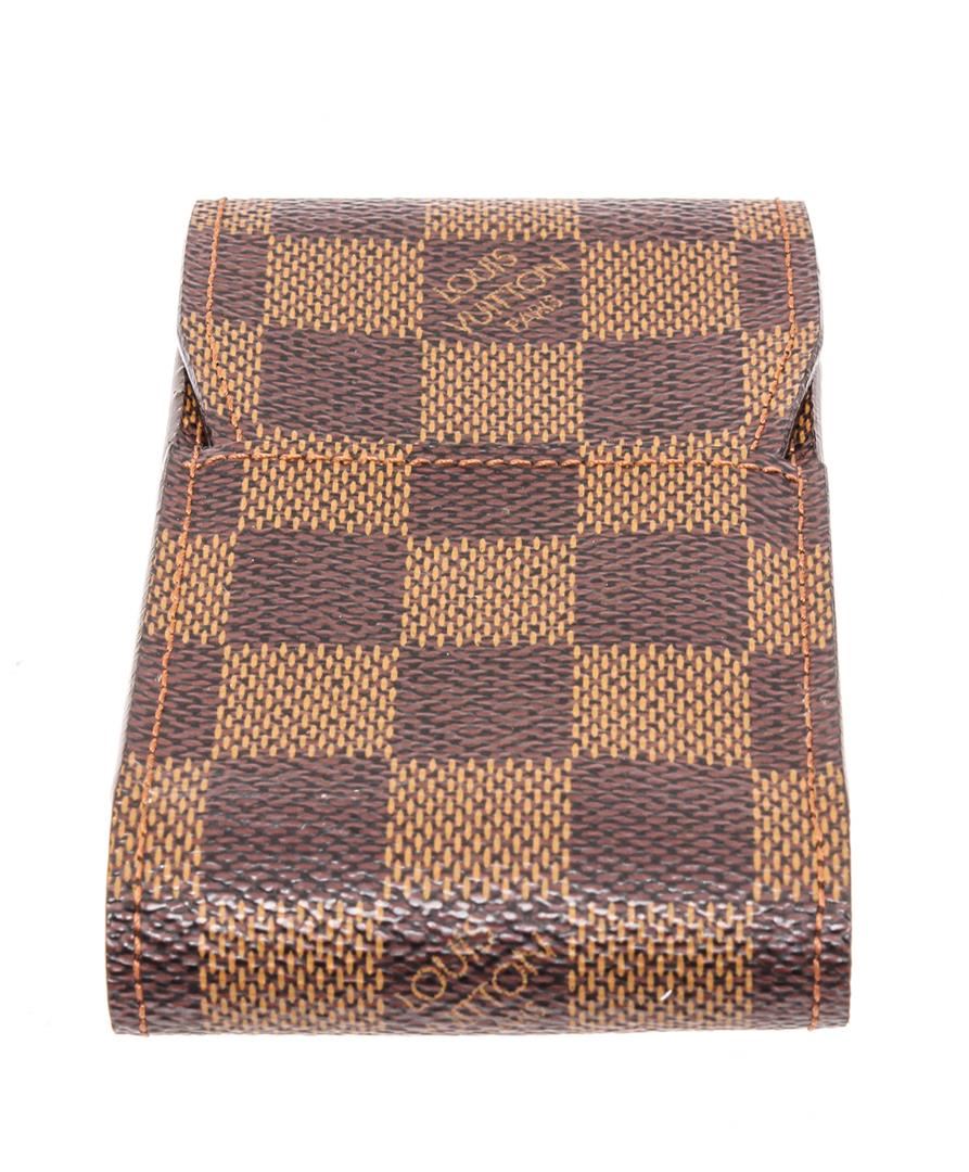 Brown Damier Ebene coated canvas Louis Vuitton cigarette holder with leather lining and tab insert flap closure at front.