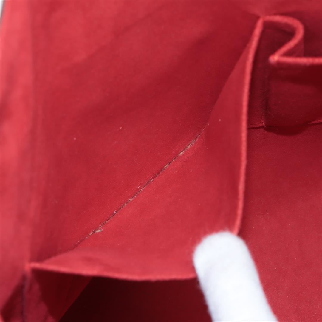 Brown Damier Ebene coated canvas Louis Vuitton Hampstead PM with gold-tone hardware, dark brown leather trim, dual flat shoulder straps, logo placard at front face, red Alcantara lining, three pockets at interior walls; one with zip closure and clasp clos