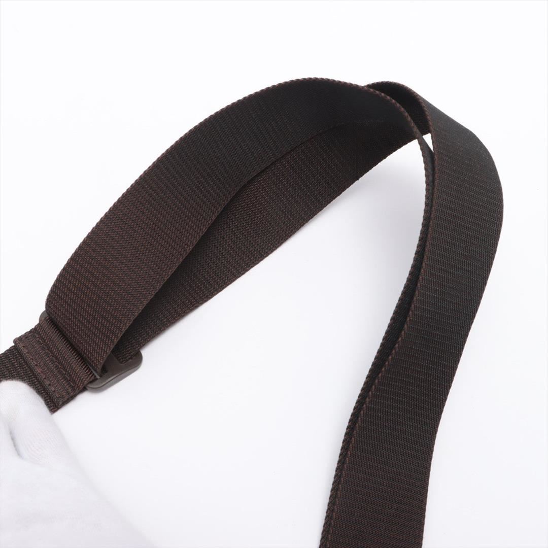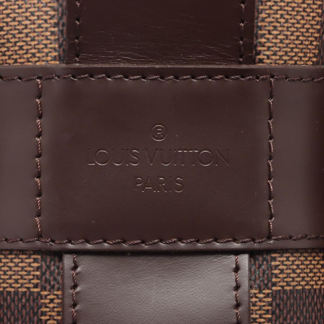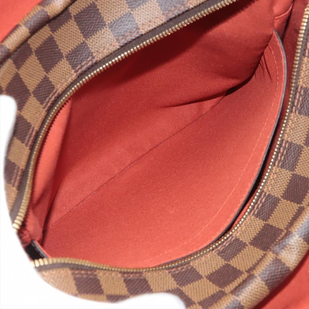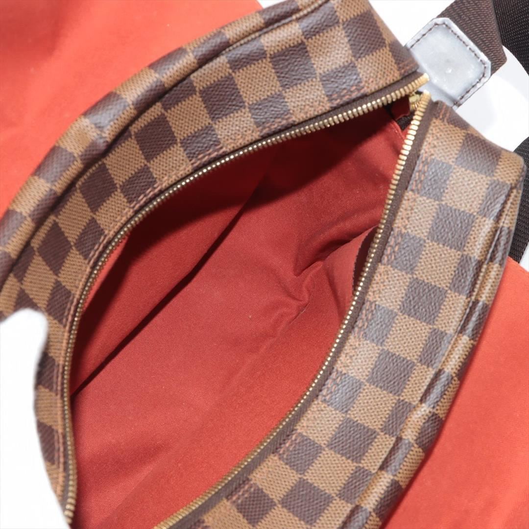 Brown Damier Ebene coated canvas Louis Vuitton Naviglio messenger bag with gold-tone hardware, walnut leather trim, single adjustable flat shoulder strap, three interior compartments; one with zip closure, terracotta woven lining, single slip pocket at in