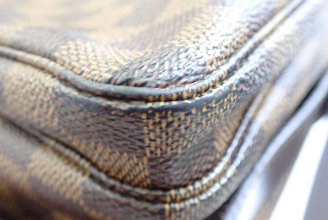 One Louis Vuitton Damier Ebene Canvas Leather Naviglio Messenger Bag. Item is sold AS-IS. All available information is listed in the description and shown in the photo. Brown Damier Ebene coated canvas Louis Vuitton Naviglio messenger bag with gold-tone hardware, dark brown leather trim, single adjustable flat shoulder strap, three interior compartments; one with zip closure, brown woven lining, single slip pocket at interior wall and dual snap closures at top. 13"x3"x11"xBag Drop:21"/33cmx7.6cmx27.9cmxBag Drop:53.3cm