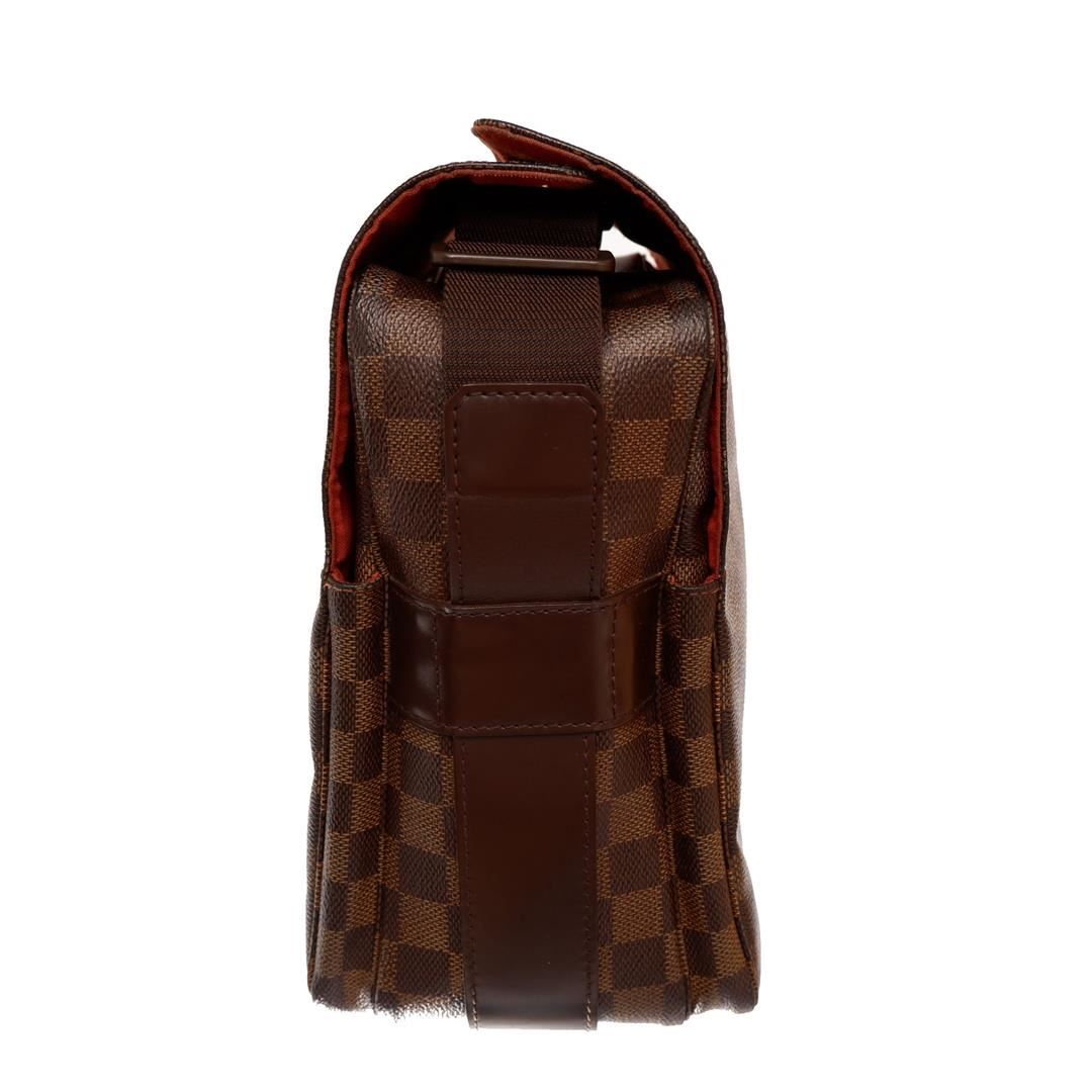 Louis Vuitton Damier Ebene Canvas Leather Naviglio Messenger Bag. All available information is listed in the description and shown in the photos. Brown and tan Damier Ebene coated canvas Louis Vuitton Naviglio messenger bag with gold-tone hardware, walnut leather trim, single adjustable flat shoulder strap, three interior compartments; one with zip closure, red woven lining, single slip pocket at interior wall and dual snap closures at top 13"x3"x11"xBag Drop:21"/33cmx7.6cmx27.9cmxBag Drop:53.3cm