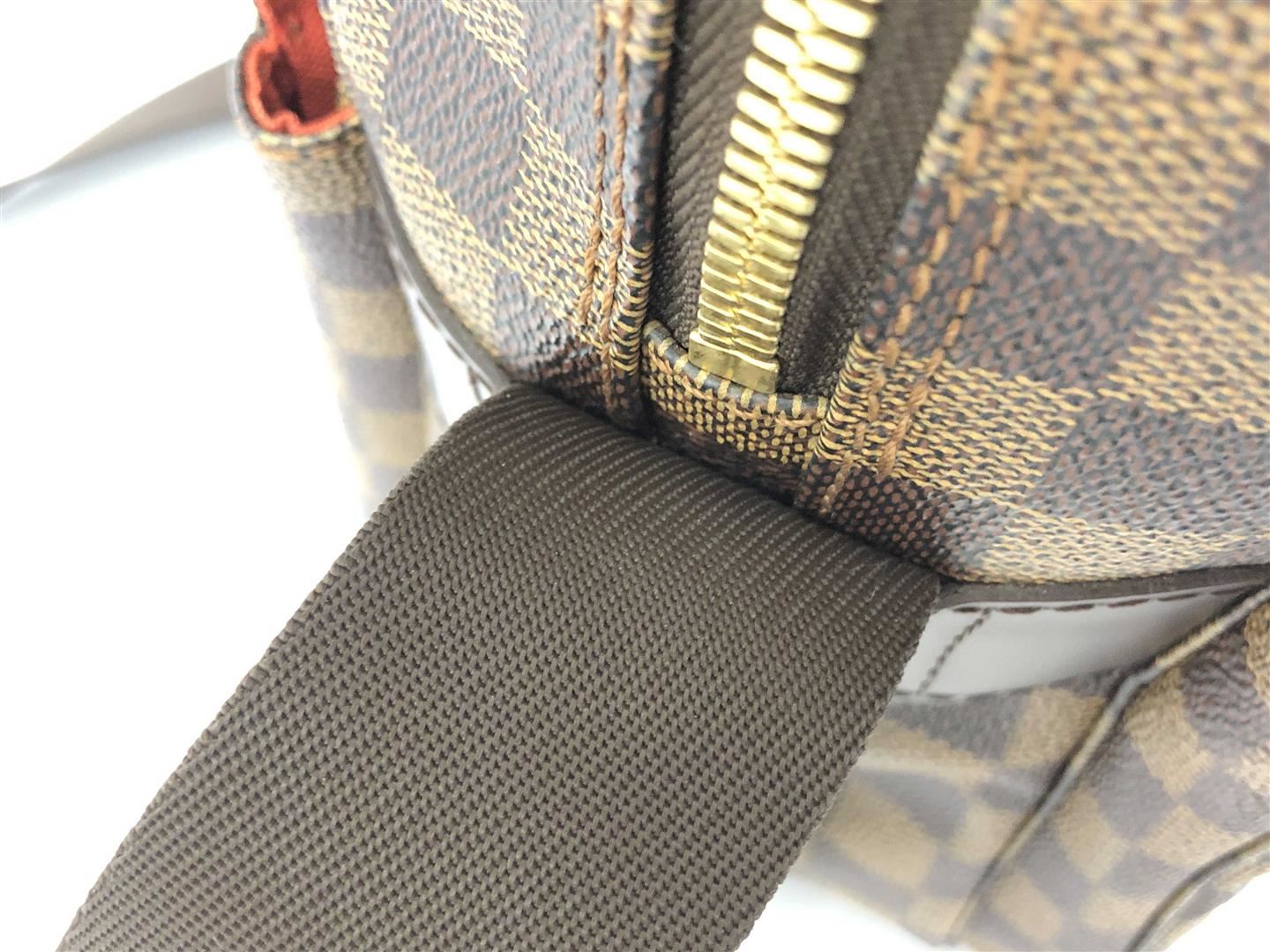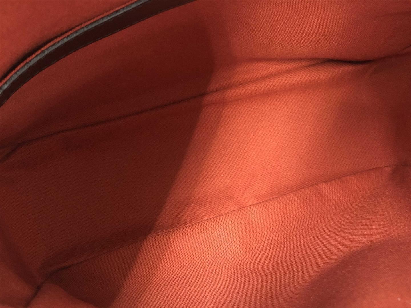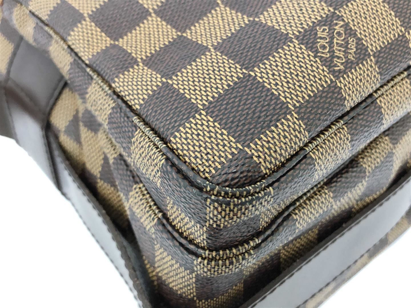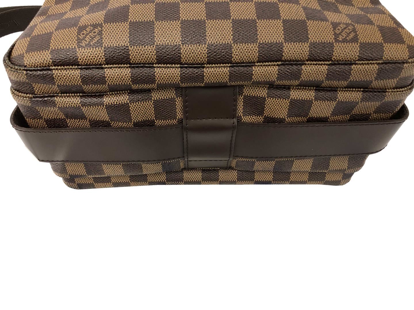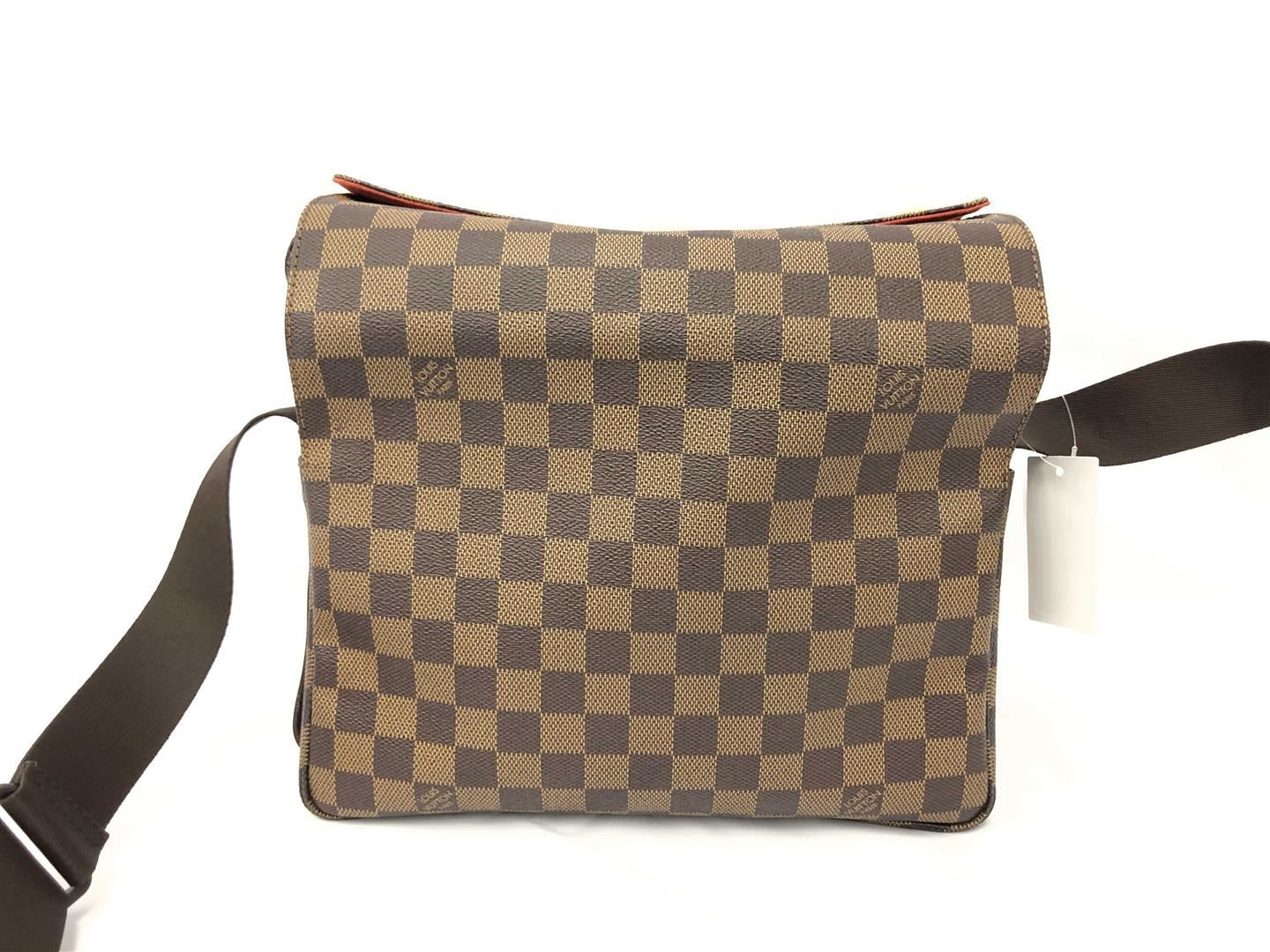 One Louis Vuitton Damier Ebene Canvas Leather Naviglio Messenger Bag. Item is sold AS-IS. All available information is listed in the description and shown in the photo. Brown Damier Ebene coated canvas Louis Vuitton Naviglio messenger bag with gold-tone hardware, dark brown leather trim, single adjustable flat shoulder strap, three interior compartments; one with zip closure, red woven lining, single slip pocket at interior wall and dual snap closures at top. 13"x3"x11"xBag Drop:21"/33cmx7.6cmx27.9cmxBag Drop:53.3cm