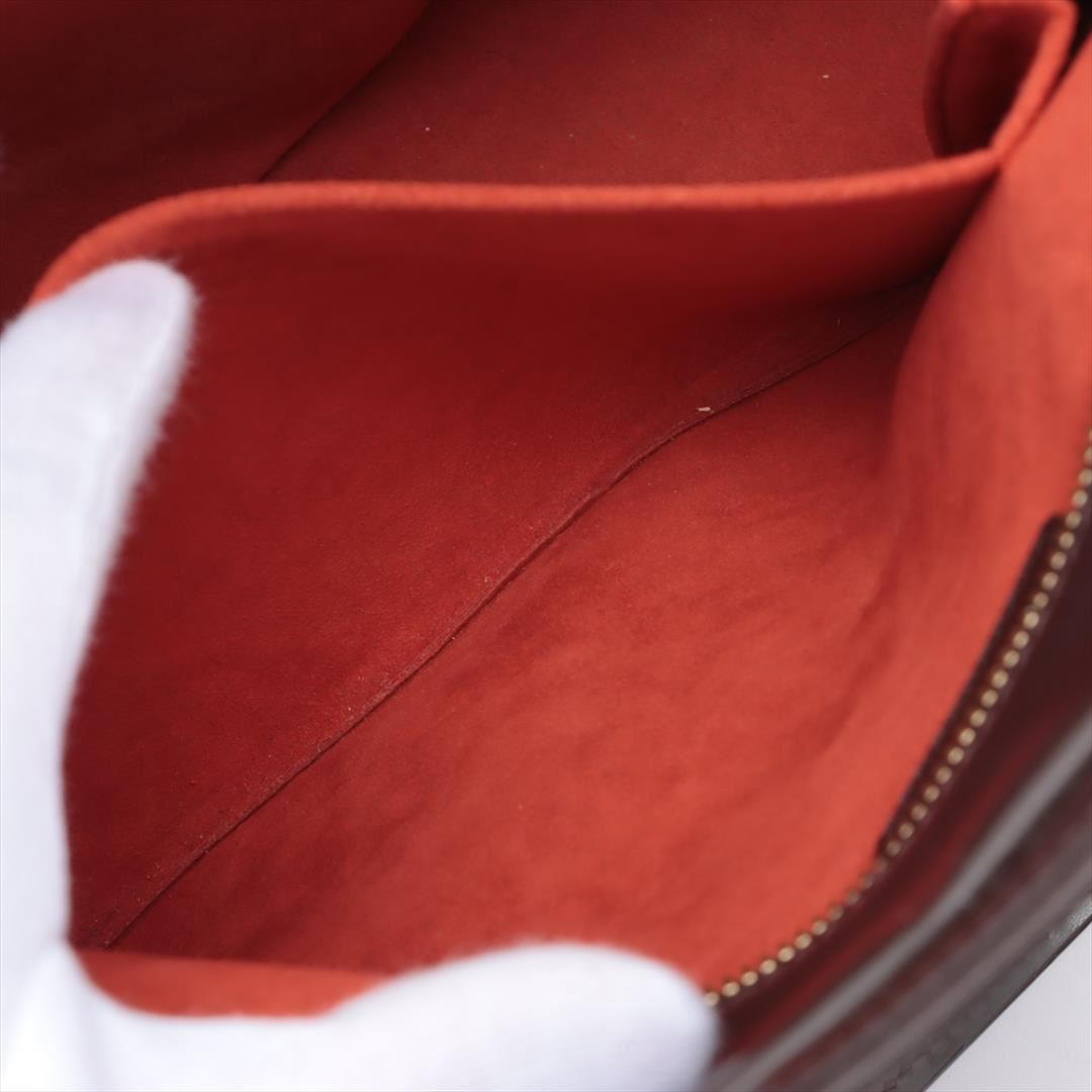 One Louis Vuitton Damier Ebene Canvas Leather Sarria Horizontal Bag. Item is sold AS-IS. All available information is listed in the description and shown in the photo. Brown Damier Ebene coated canvas Louis Vuitton Sarria Horizontal bag with dark brown leather trim, gold-tone hardware, rust red Alcantara microfiber lining, two interior slip pockets, slip pocket on front exterior, dual rolled top handles, and zip top closure. 11.5"x4"x9.5"HD:5"/30cmx10cm24cm