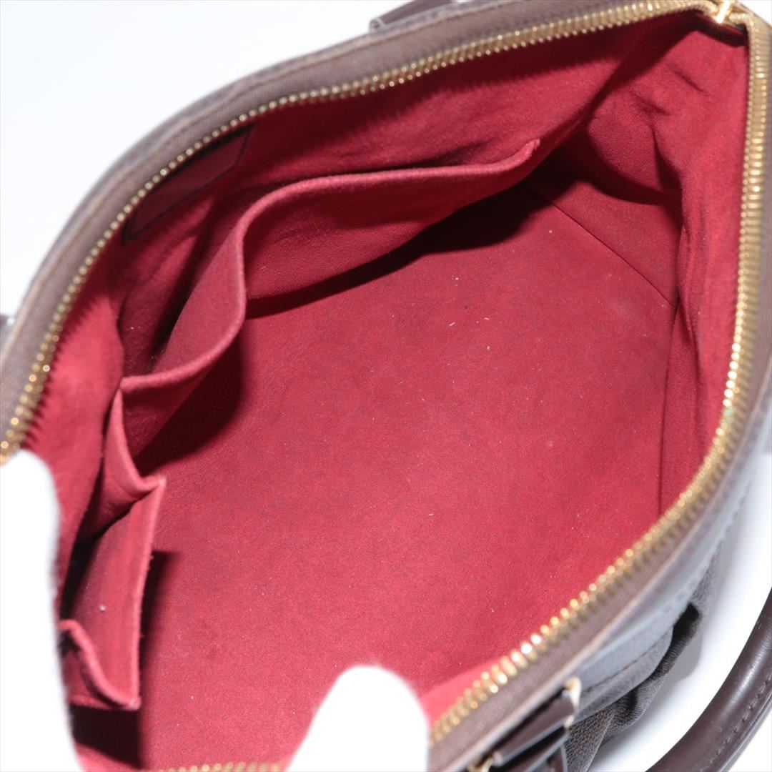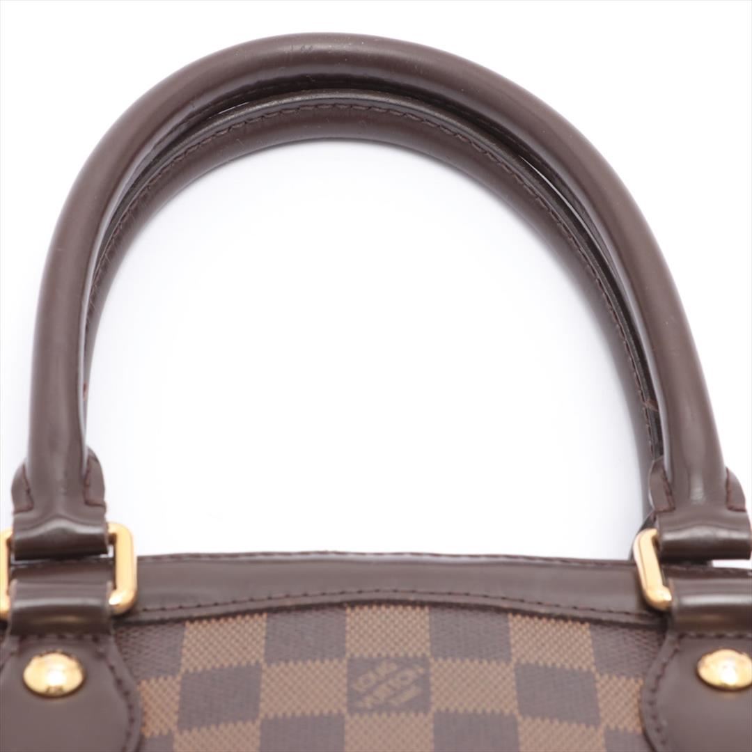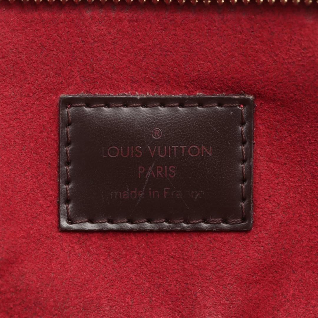 Brown and tobacco Damier Ebene coated canvas Louis Vuitton Trevi PM with brass hardware, mocha leather trim, optional shoulder strap, dual rolled handles, red Alcantara lining, dual slit pockets at interior walls and zip closure and zip closure at top. Shop AUTHENTIC Louis Vuitton handbags at MARQUE. 13.5"x5.5"x10.25"xBag Drop:9"/34.2cmx13.9cmx25cmxBag Drop:22.8cm
