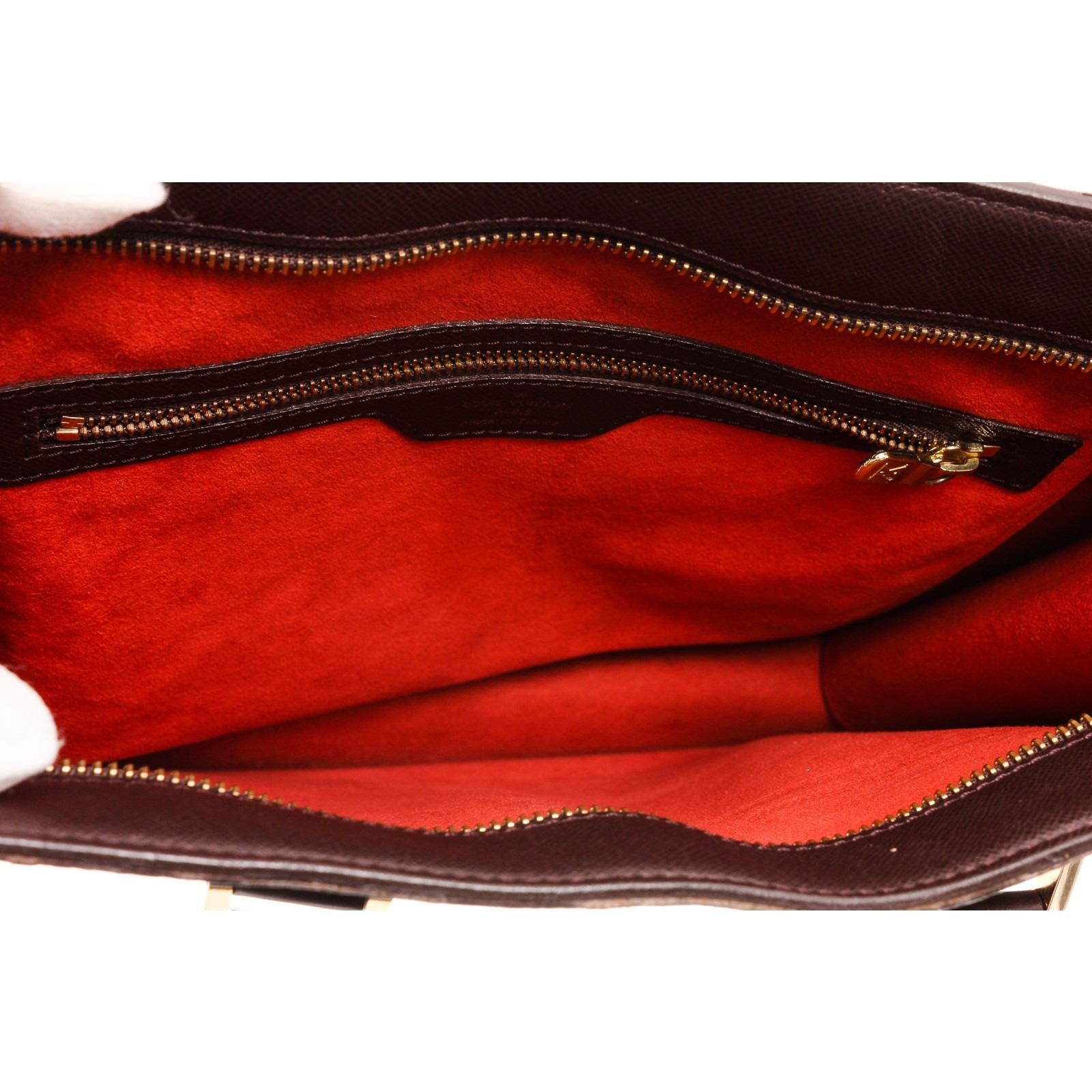 Description: Louis Vuitton Damier Ebene Canvas Leather Venice Bag. Brown and tobacco Damier Ebene coated canvas Louis Vuitton Venice bag with brass hardware, dual rolled top handles, terracotta Alcantara lining, single zip pocket at interior wall and open top.