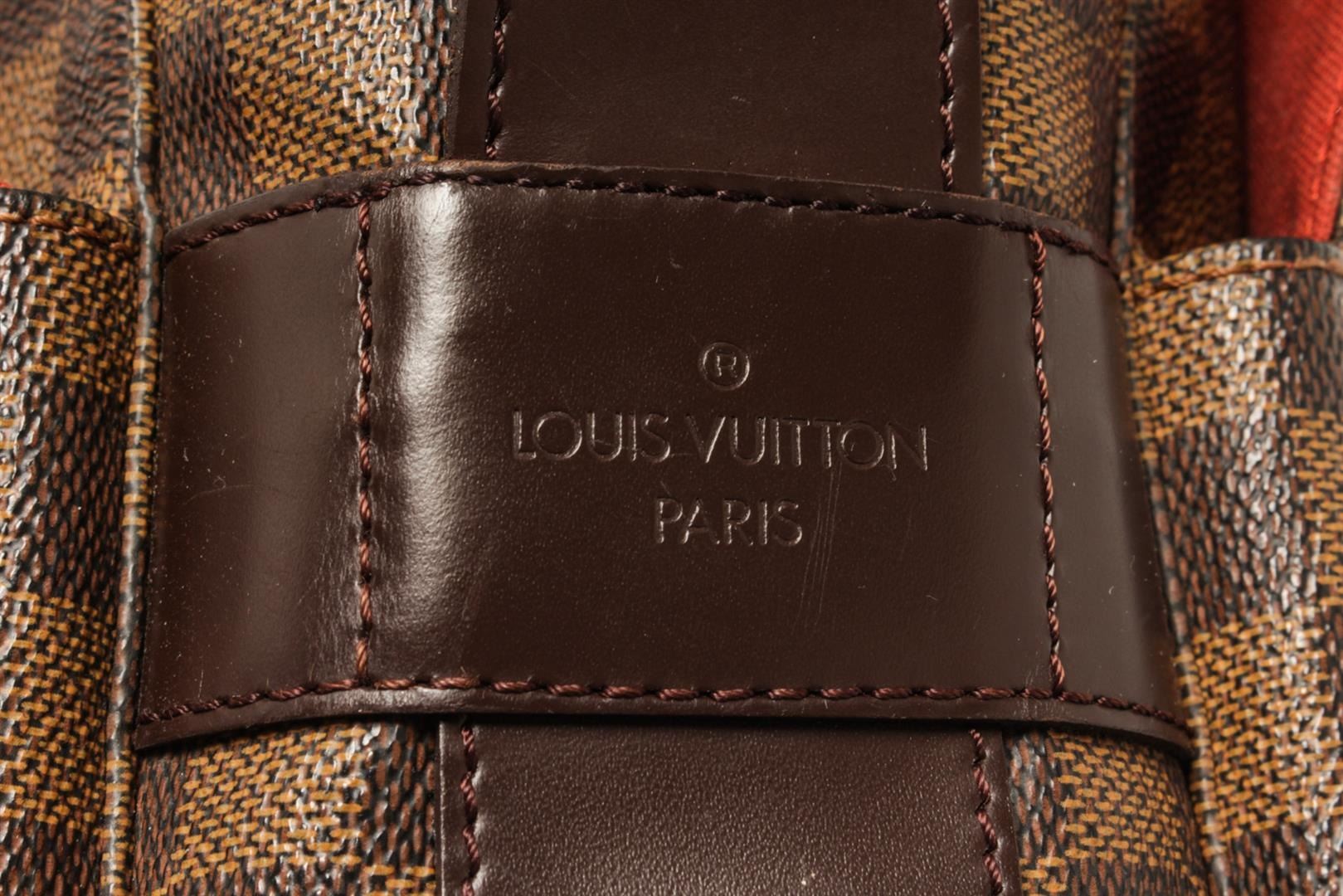 One Louis Vuitton Damier Ebene Canvas Naviglio Shoulder Bag. Item is sold AS-IS. All available information is listed in the description and shown in the photo. louis vuitton damier ebene canvas naviglio shoulder bag with brown canvas, coated finish, signature damier ebne canvas, adjustable shoulder strap, foldover top main compartment. Depth 3.5 in, Height 9.1 in / Depth 9 cm, Height 23 cm