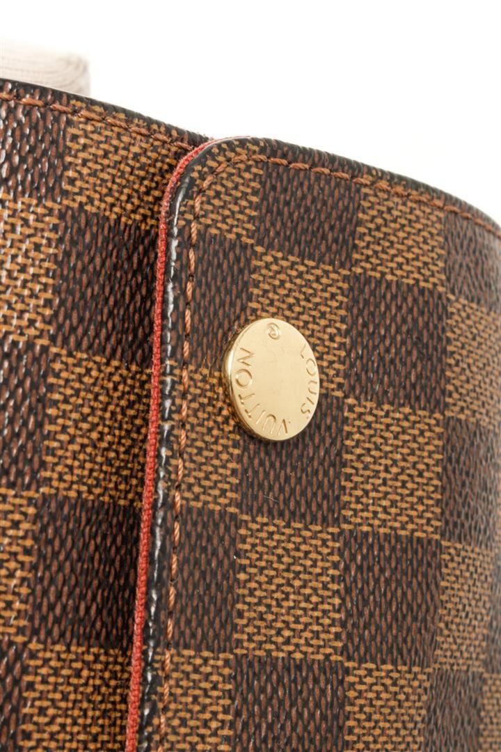 One Louis Vuitton Damier Ebene Canvas Naviglio Shoulder Bag. Item is sold AS-IS. All available information is listed in the description and shown in the photo. louis vuitton damier ebene canvas naviglio shoulder bag with brown canvas, coated finish, signature damier ebne canvas, adjustable shoulder strap, foldover top main compartment. Depth 3.5 in, Height 9.1 in / Depth 9 cm, Height 23 cm