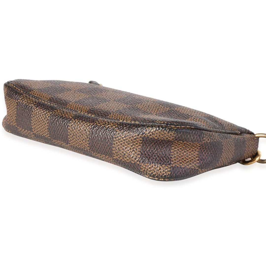 One Louis Vuitton Damier Ebene Mini Pochette Accessoires. Item is sold AS-IS. All available information is listed in the description and shown in the photo. Louis Vuitton Damier Ebene Mini Pochette Accessoires. Features gold hardware, red suede interior, and a gold zipper closure.