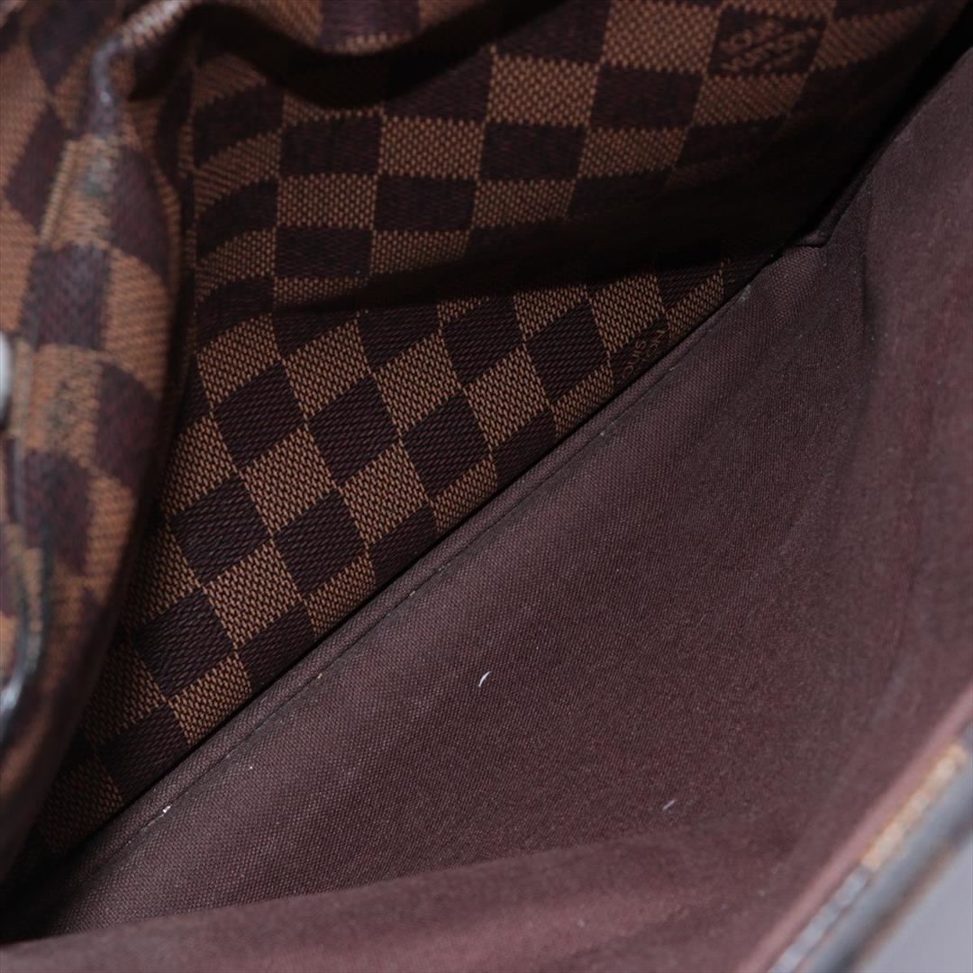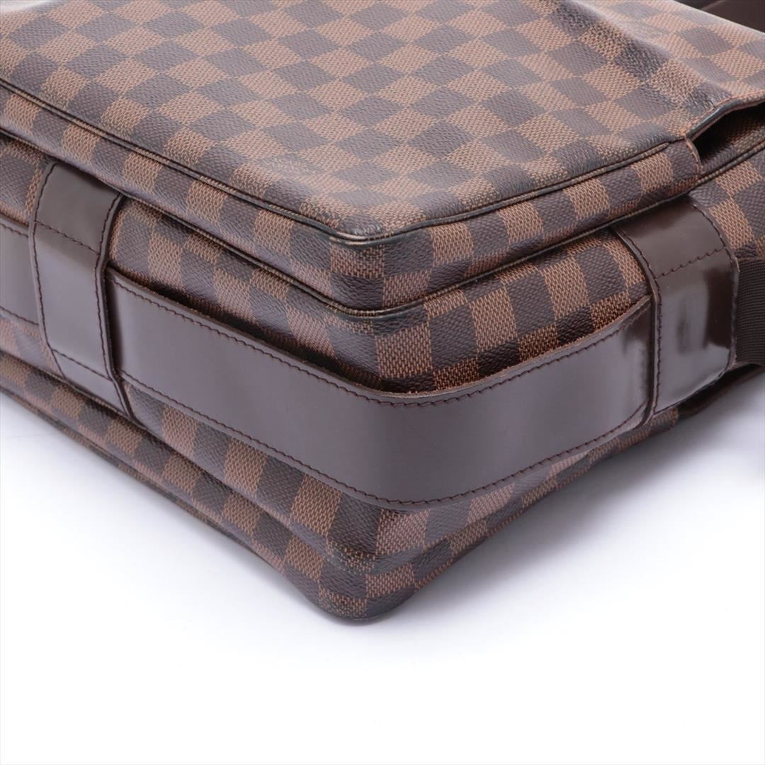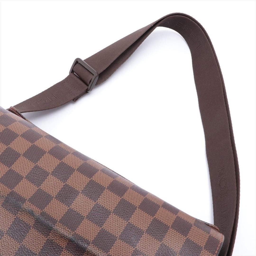 Brown and tan Damier Ebene coated canvas Louis Vuitton Naviglio messenger bag with brass hardware, walnut leather trim, single adjustable flat shoulder strap, three interior compartments; one with zip closure, terracotta woven lining, single slip pocket at interior wall and dual snap closures at top. Shop AUTHENTIC Louis Vuitton bags at MARQUE. 13"x3"x11"xBag Drop:21"/33cmx7.6cmx27.9cmxBag Drop:53.3cm